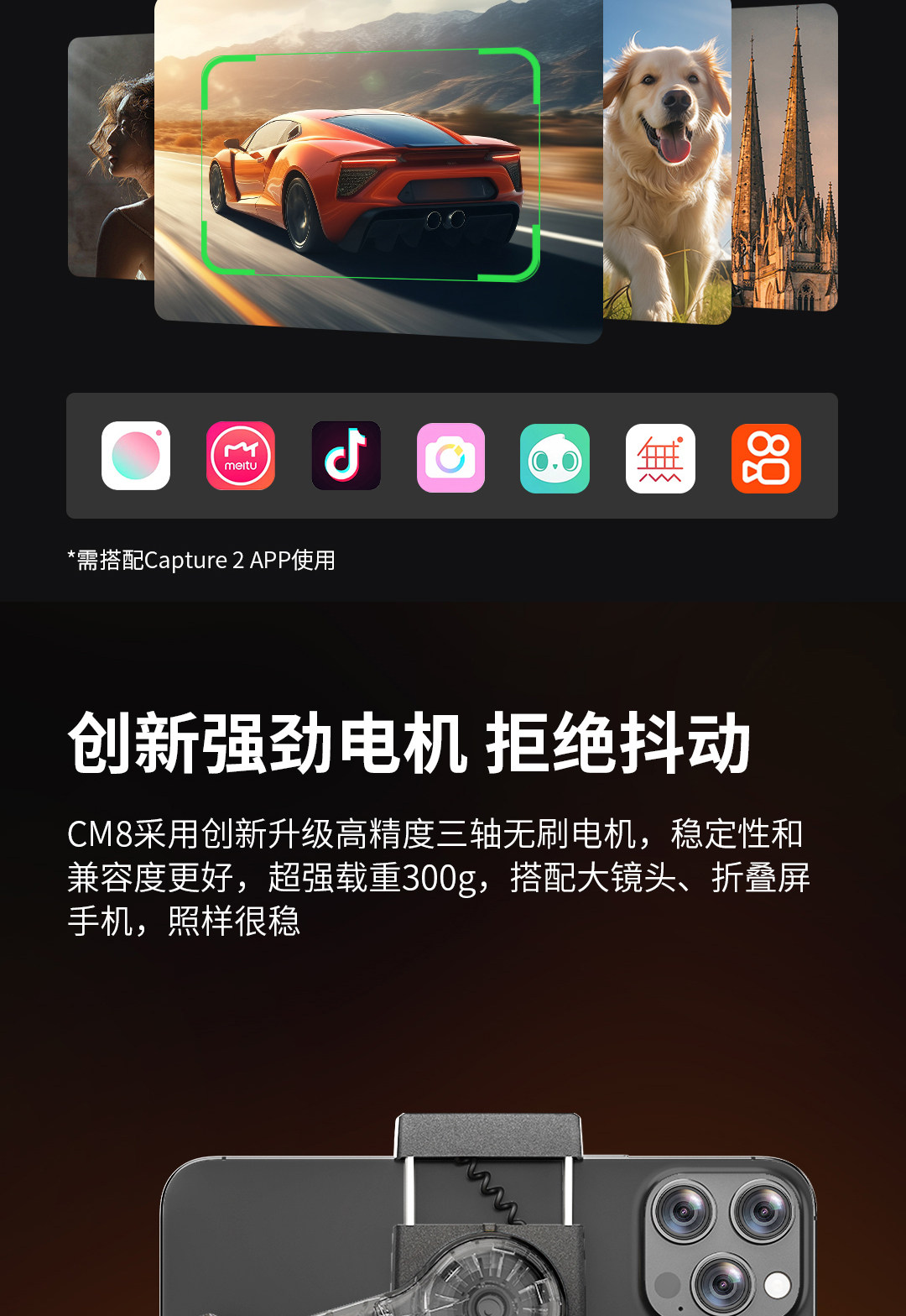 逗映CM8手机云台稳定器可折叠三轴防抖自动云台