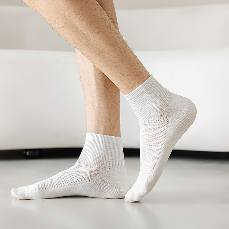 面料名称: 棉 无骨缝制: 否:机器缝头 功能: 防臭 图案: 纯色 包装形式: 袋装 适用性别: 男 适用年龄段: 青年(18-40周岁) 主面料成分: 棉 筒高: 短筒 上市时间: 2024年夏季 重量: 0.05 kg/双