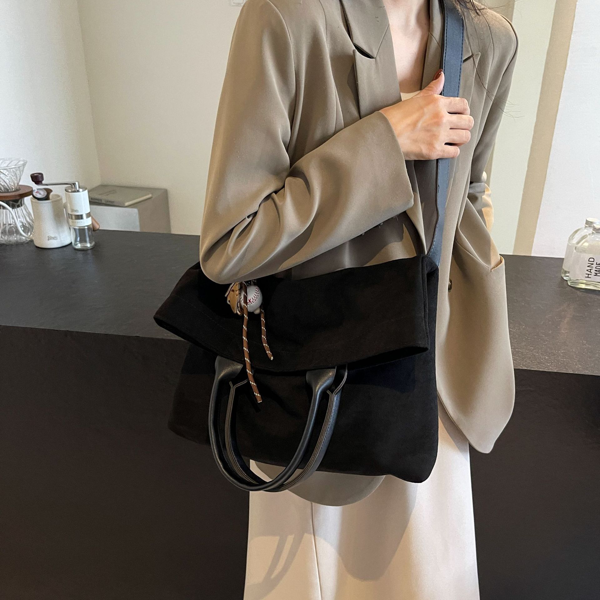 跨境外贸休闲通勤大容量托特包百搭单肩斜挎包时尚简约磨砂水桶包 English | 投诉