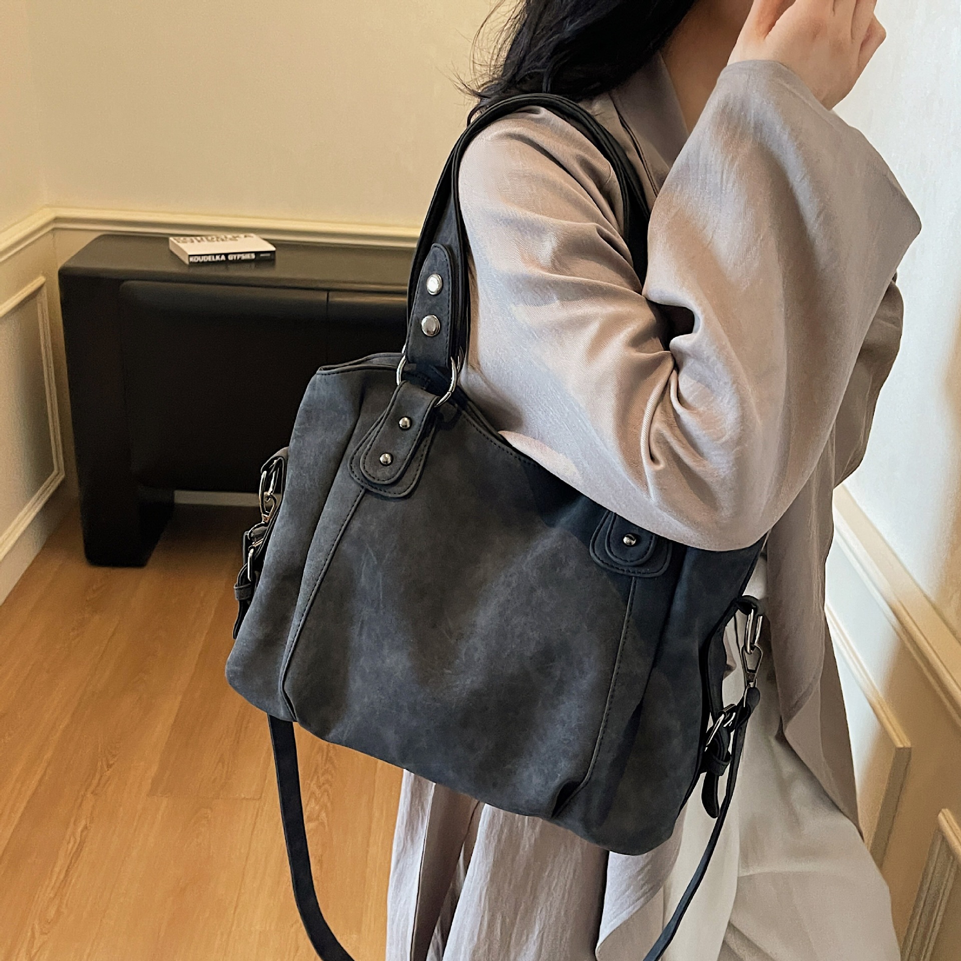 跨境外贸时尚大容量托特包百搭单肩女包高级感休闲斜挎水桶包 English | 投诉