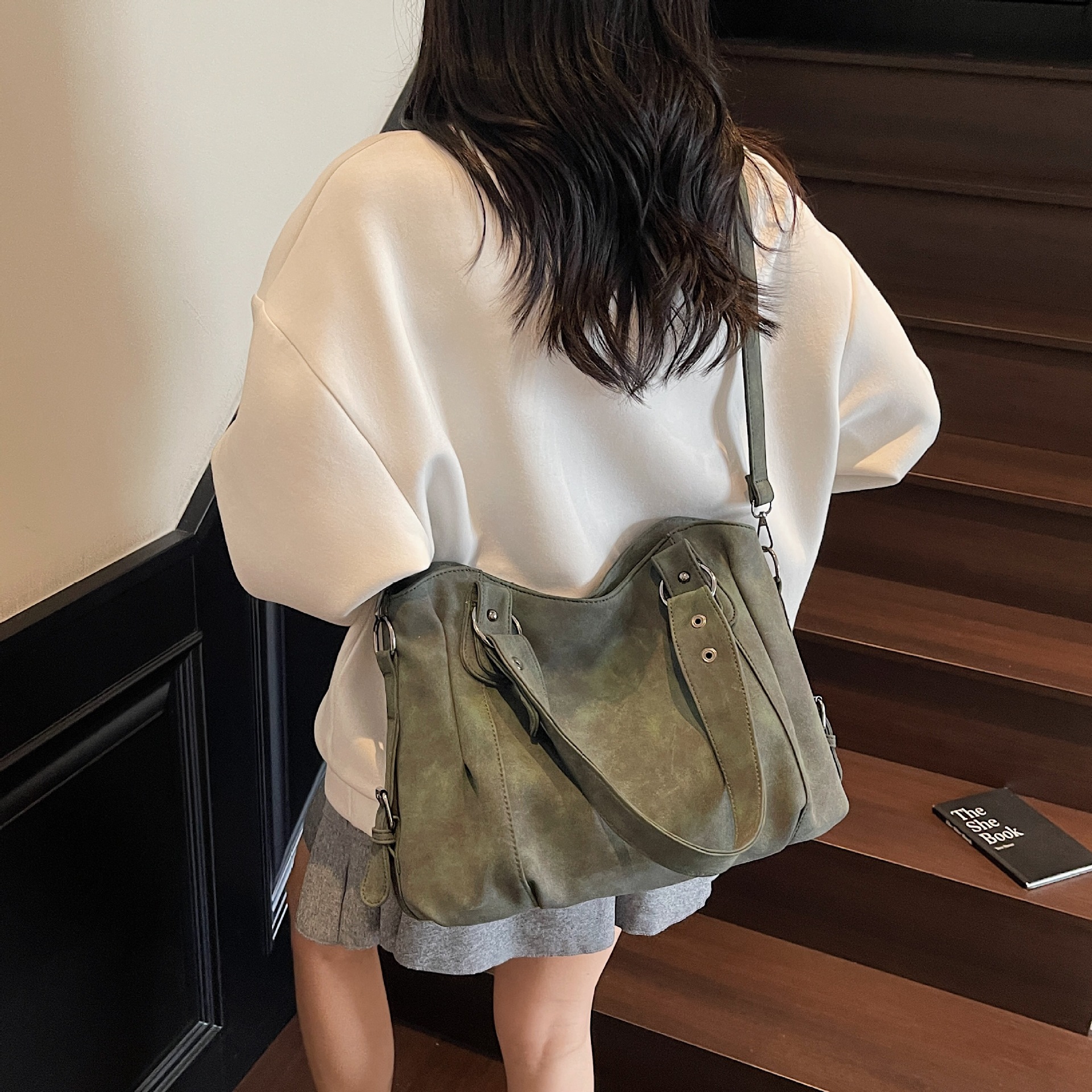 颜色: 黑色,深绿色,卡其色 风格: 都市简约 材质: PU 箱包大小: 大 上市年份季节: 2025年秋季 适用场景: 日常搭配 品牌: - 流行元素: 车缝线 货号: - 里料质地: 涤纶 重量: 0.34 kg/件