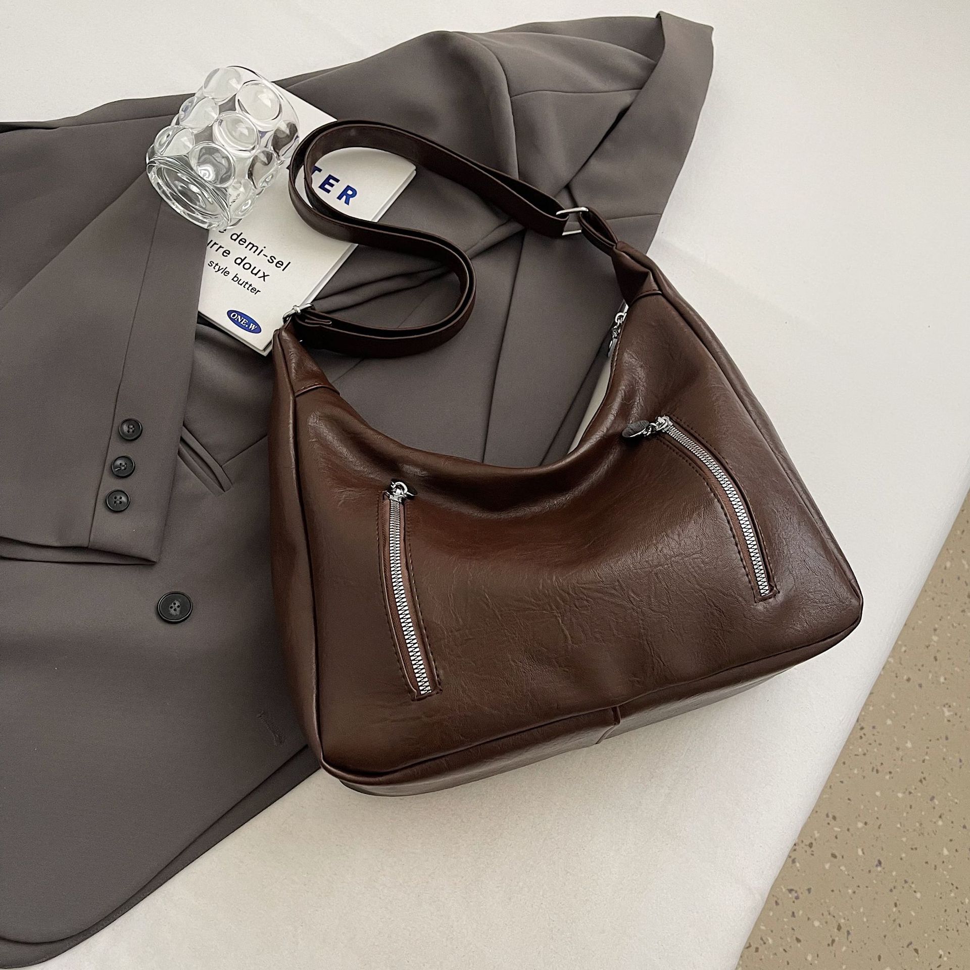 颜色: 黑色,棕色,咖色 风格: 都市简约 材质: PU 箱包大小: 中 上市年份季节: 2025年秋季 适用场景: 日常搭配 品牌: - 流行元素: 车缝线 货号: - 里料质地: 涤纶 重量: 0.34 kg/件