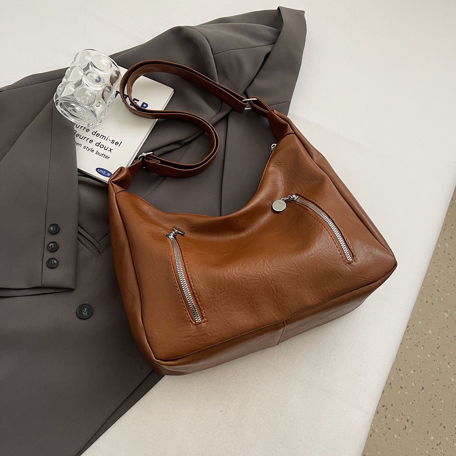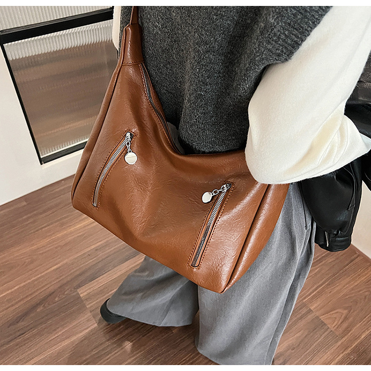 跨境外贸时尚复古单肩女包百搭高级感斜挎包大容量上班通勤水桶包