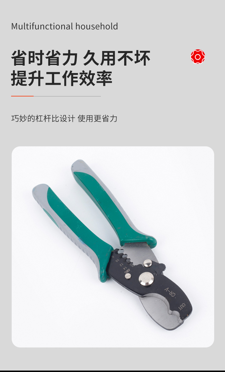 自产自销65锰钢 8寸电缆剥线钳子多功能剪线断线拔线钳扒皮电工钳 English | 投诉