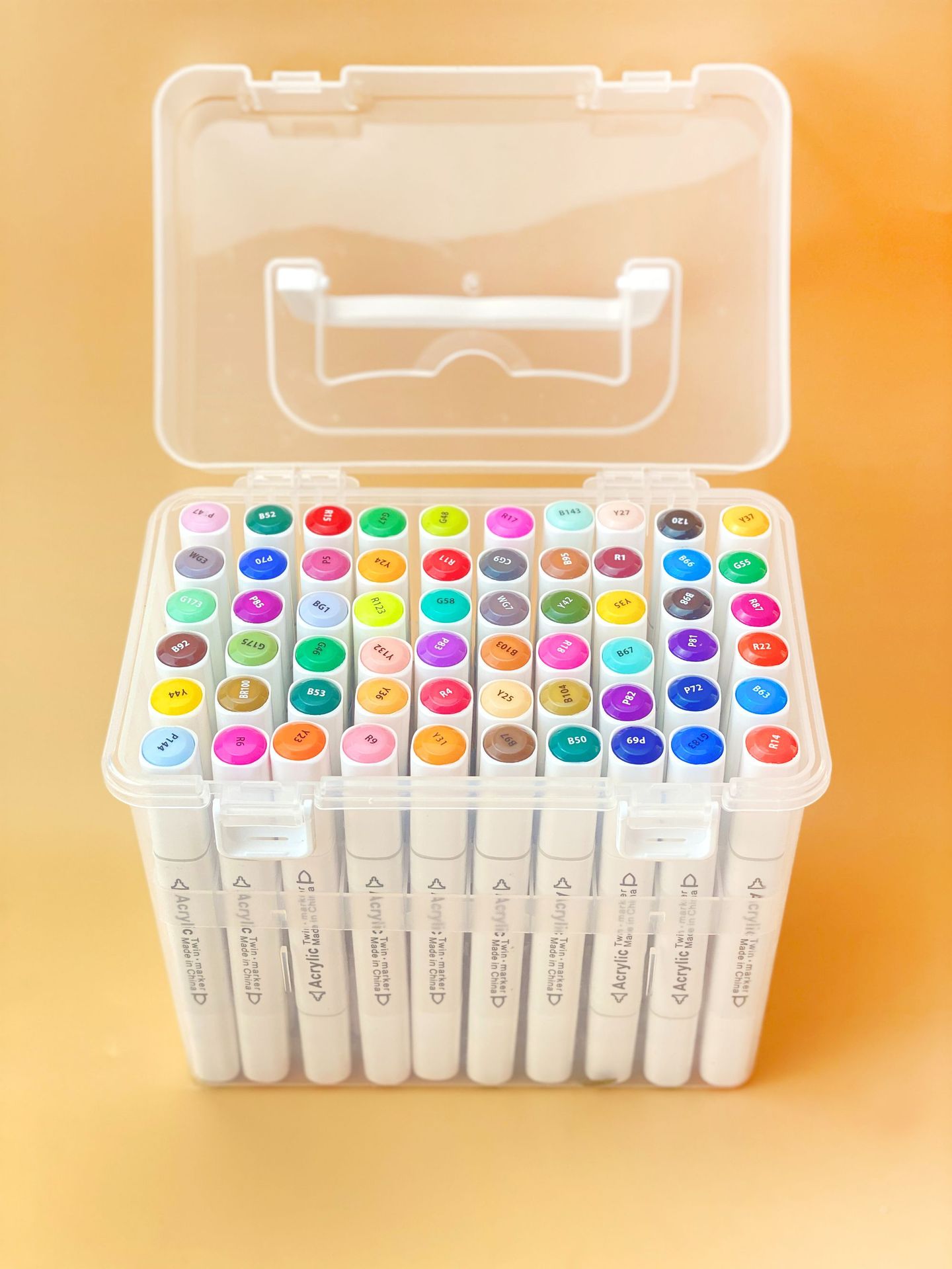 品牌: 德皇文具 货号: 双头丙烯马克笔 规格: 12色,24色,36色,48色,60色 笔芯颜色: 其他色号 是否专利货源: 否 箱规(cm): 24色:60*35*37