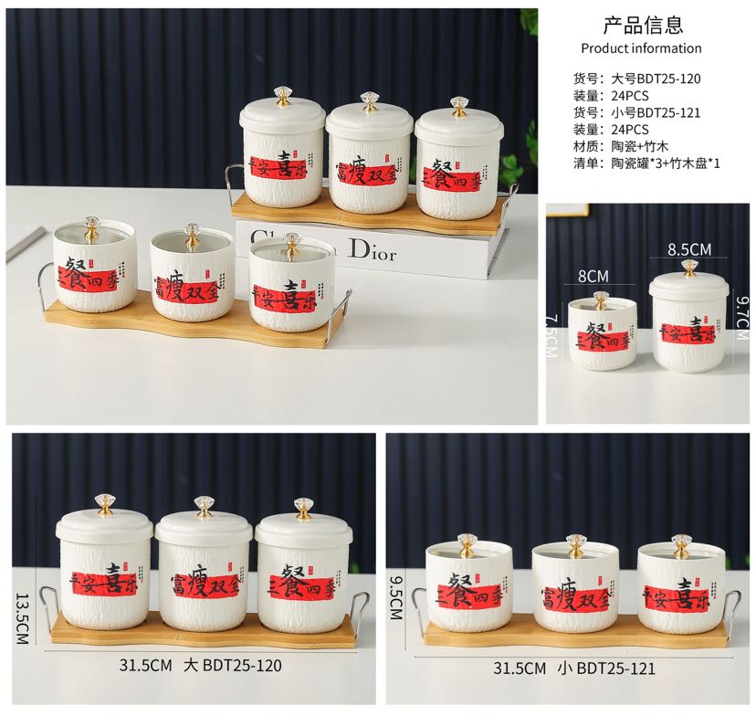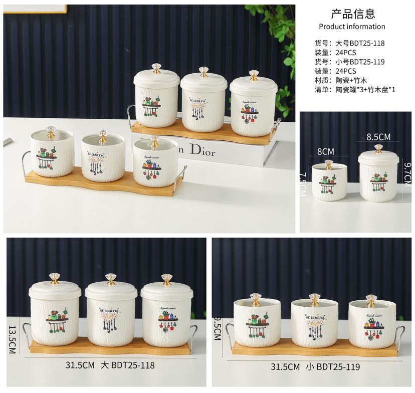 高档轻奢调味罐新创意陶瓷罐竹木盘厨房家用 English | 投诉