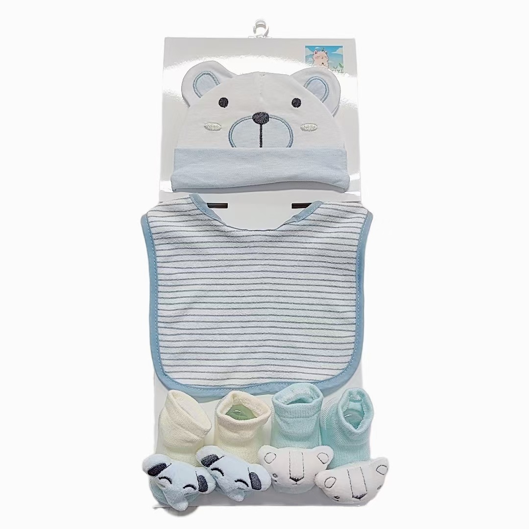 材质:发带/帽子--全棉棉毛布,围兜--CVC毛巾布
