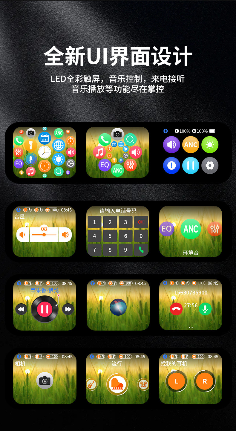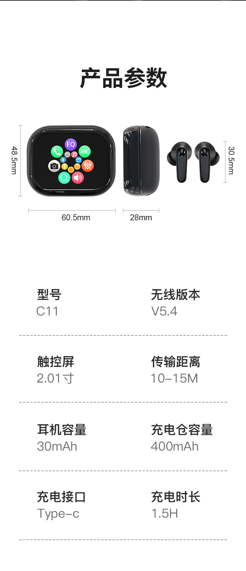 跨境新款C11智能彩屏TWS蓝牙耳机ANC+ENC降噪触控长续航蓝牙耳机 English | 投诉