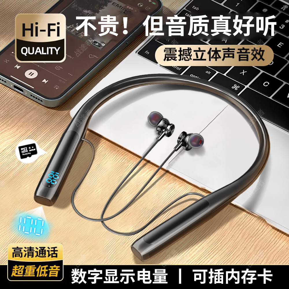 新款颈戴式无线蓝牙5.3耳机大容量数显降噪立体音低延迟运动耳机