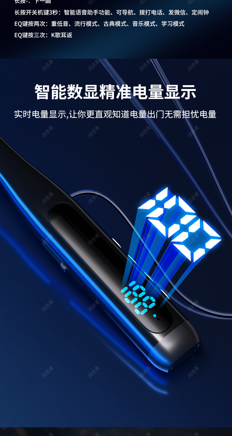 新款颈戴式无线蓝牙5.3耳机大容量数显降噪立体音低延迟运动耳机 English | 投诉