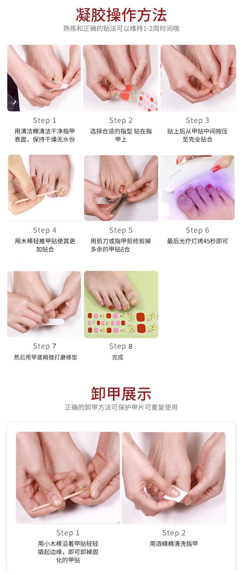 网红半固化全贴凝胶脚指甲贴欧美脚趾UV美甲贴3d烤灯光疗贴纸 投诉