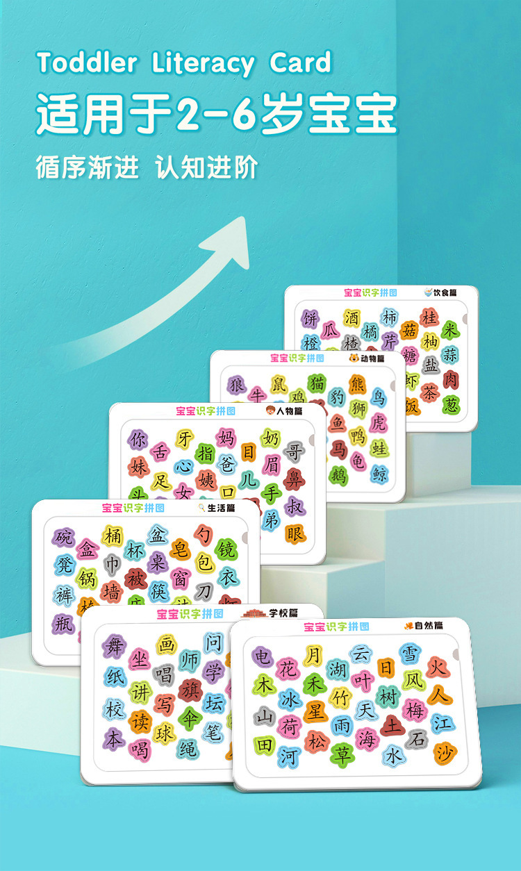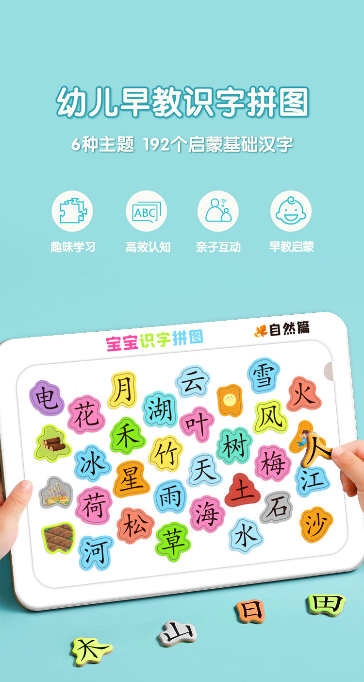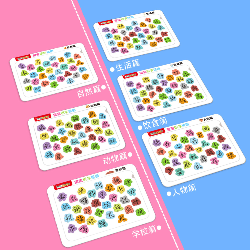 抖音同款宝宝认字拼图儿童趣味识字卡片幼儿园汉字学习益智早教玩