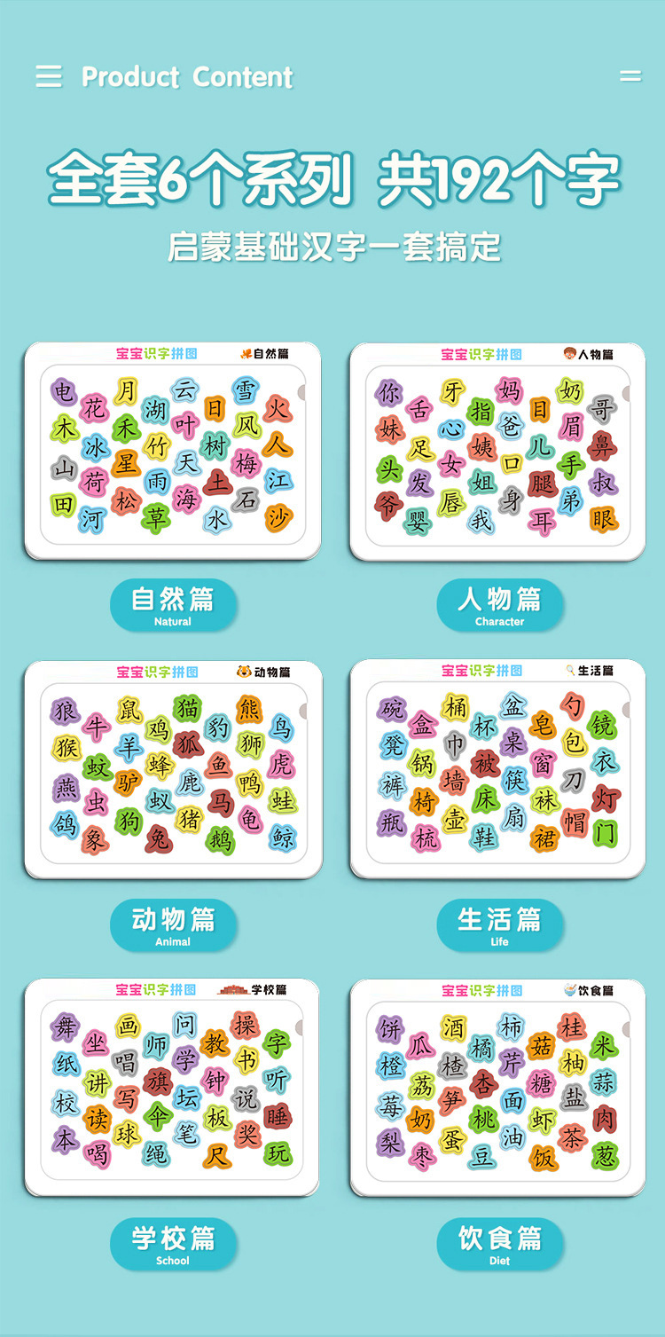 抖音同款宝宝认字拼图儿童趣味识字卡片幼儿园汉字学习益智早教玩 投诉