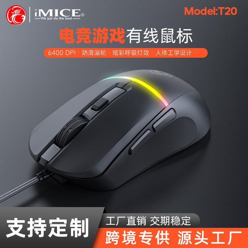 IMICE品牌T20厂家直供跨境USB炫彩电竞LOL光电游戏鼠标
