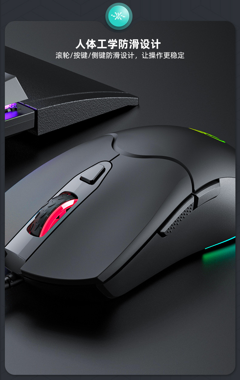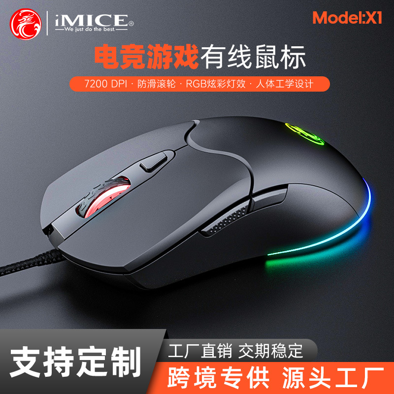 IMICE品牌X1厂家直供跨境6键RGB炫彩发光高精度游戏鼠标办公商务