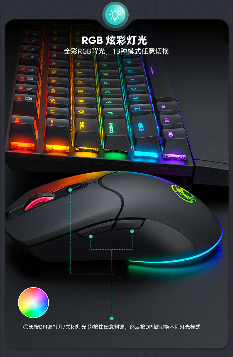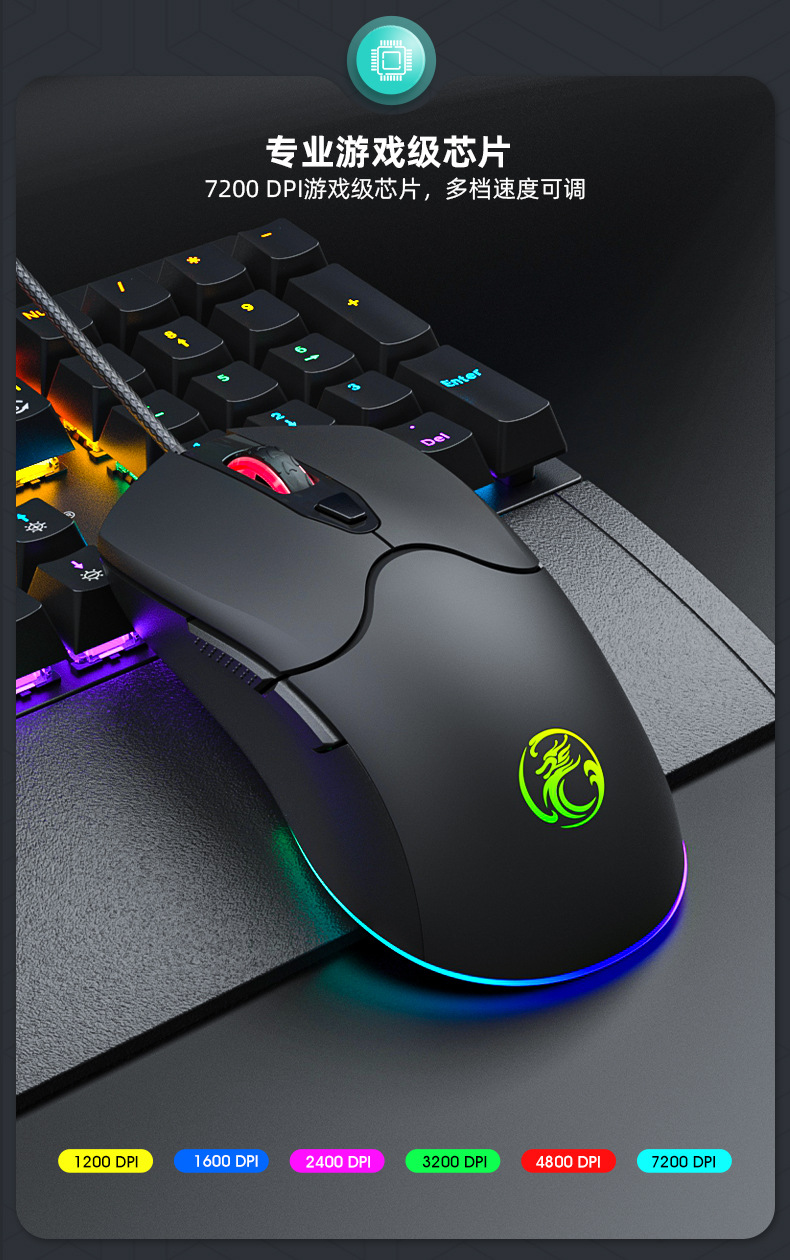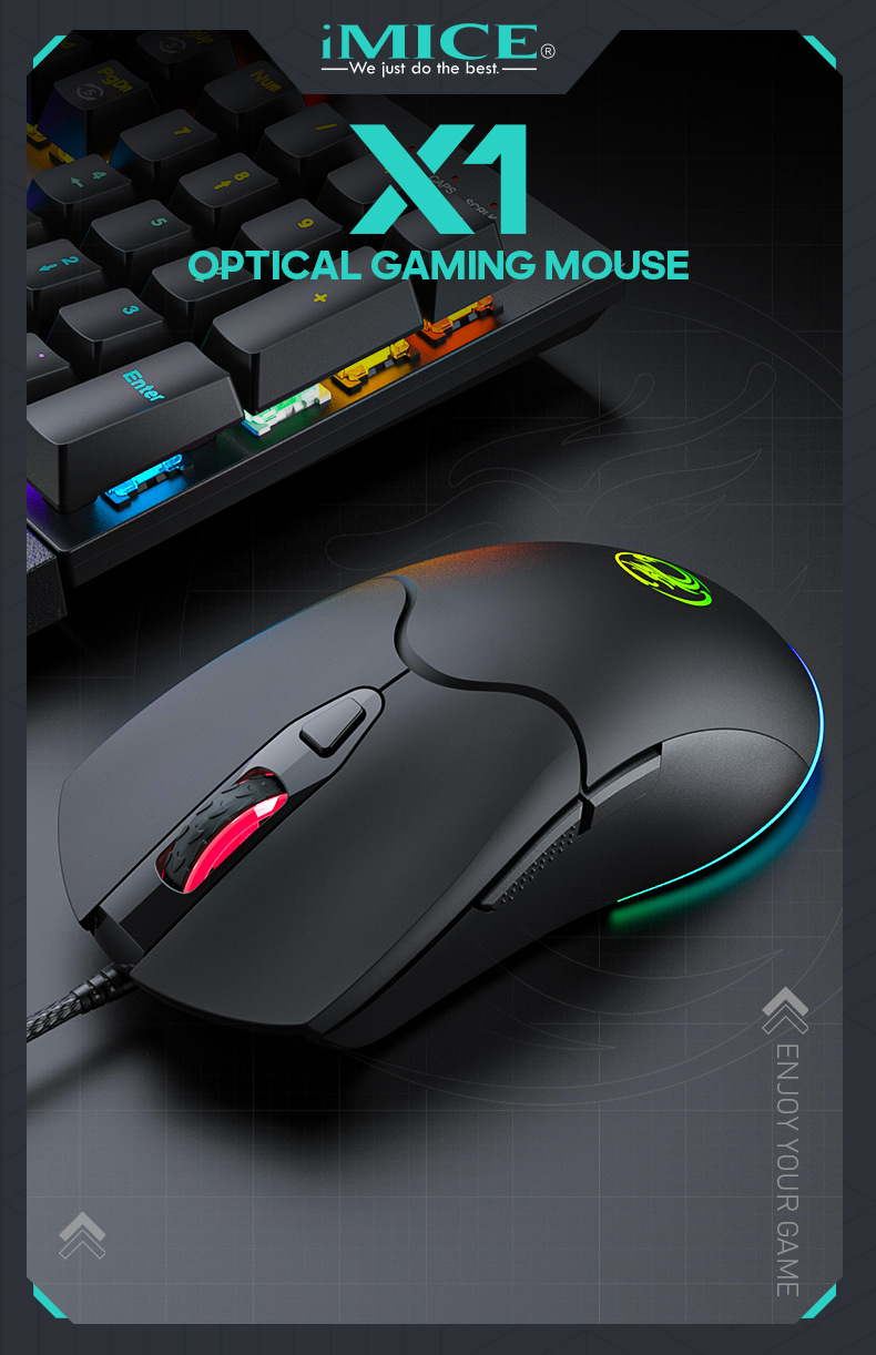 IMICE品牌X1厂家直供跨境6键RGB炫彩发光高精度游戏鼠标办公商务 English | 投诉