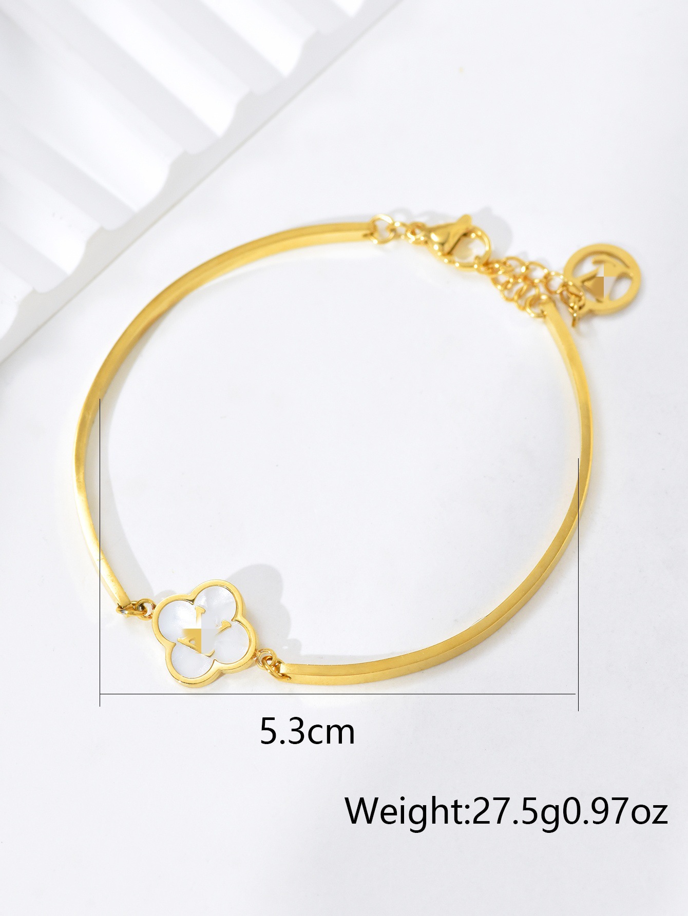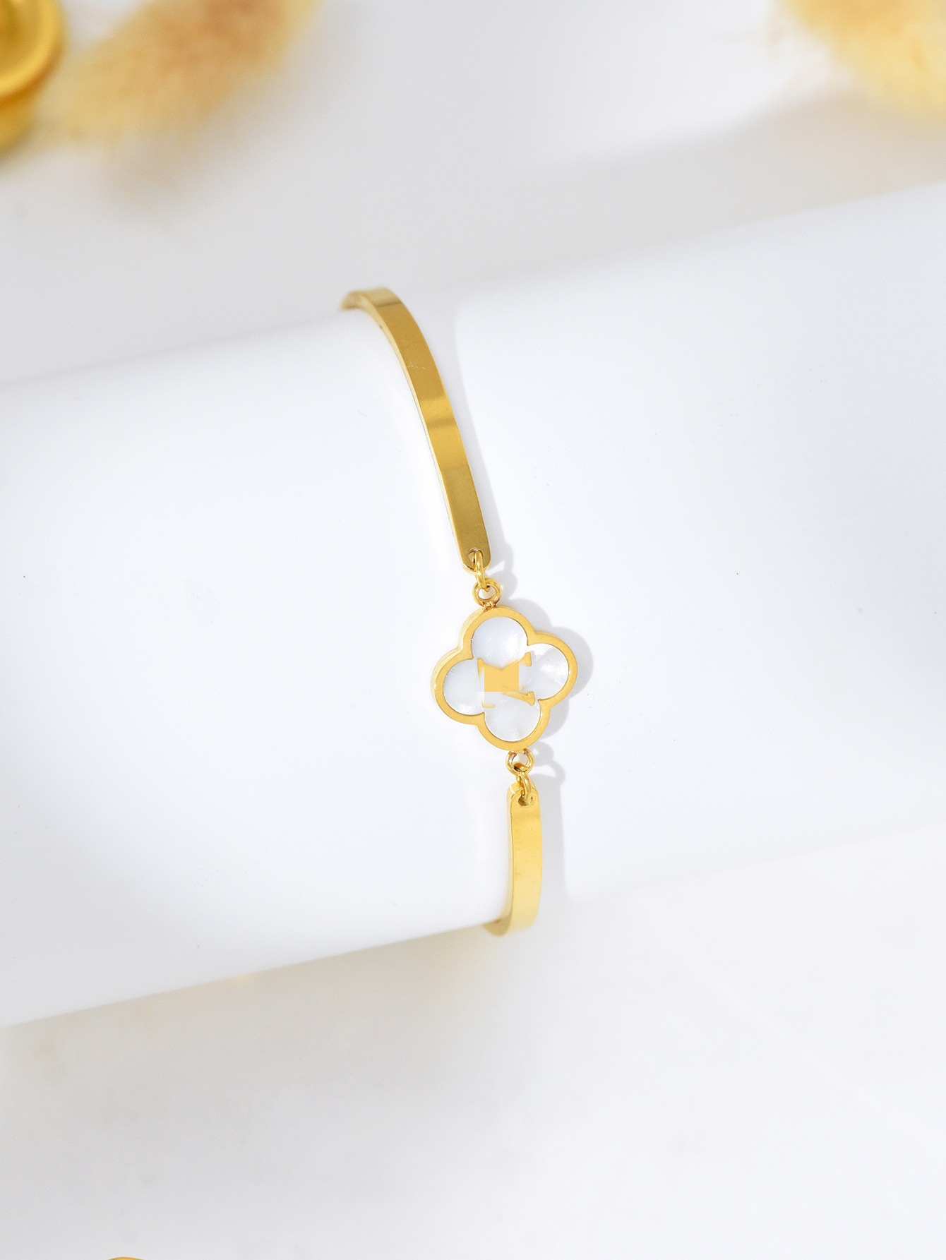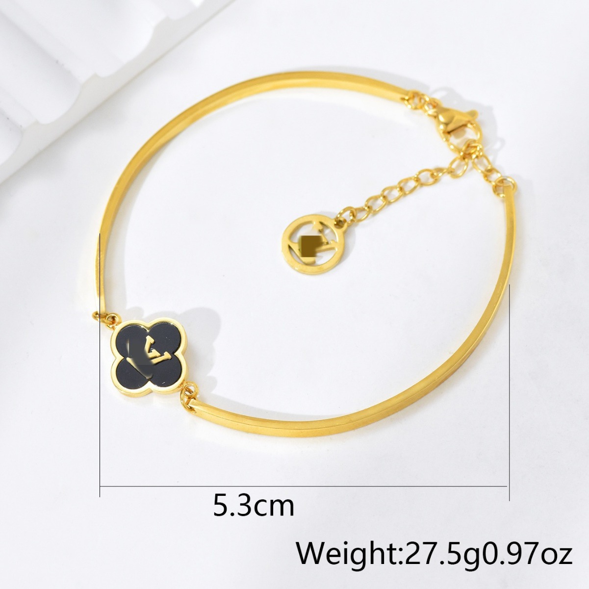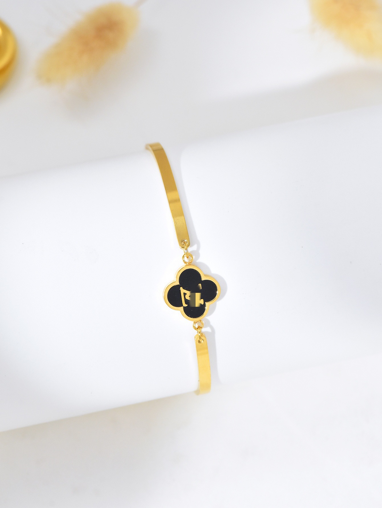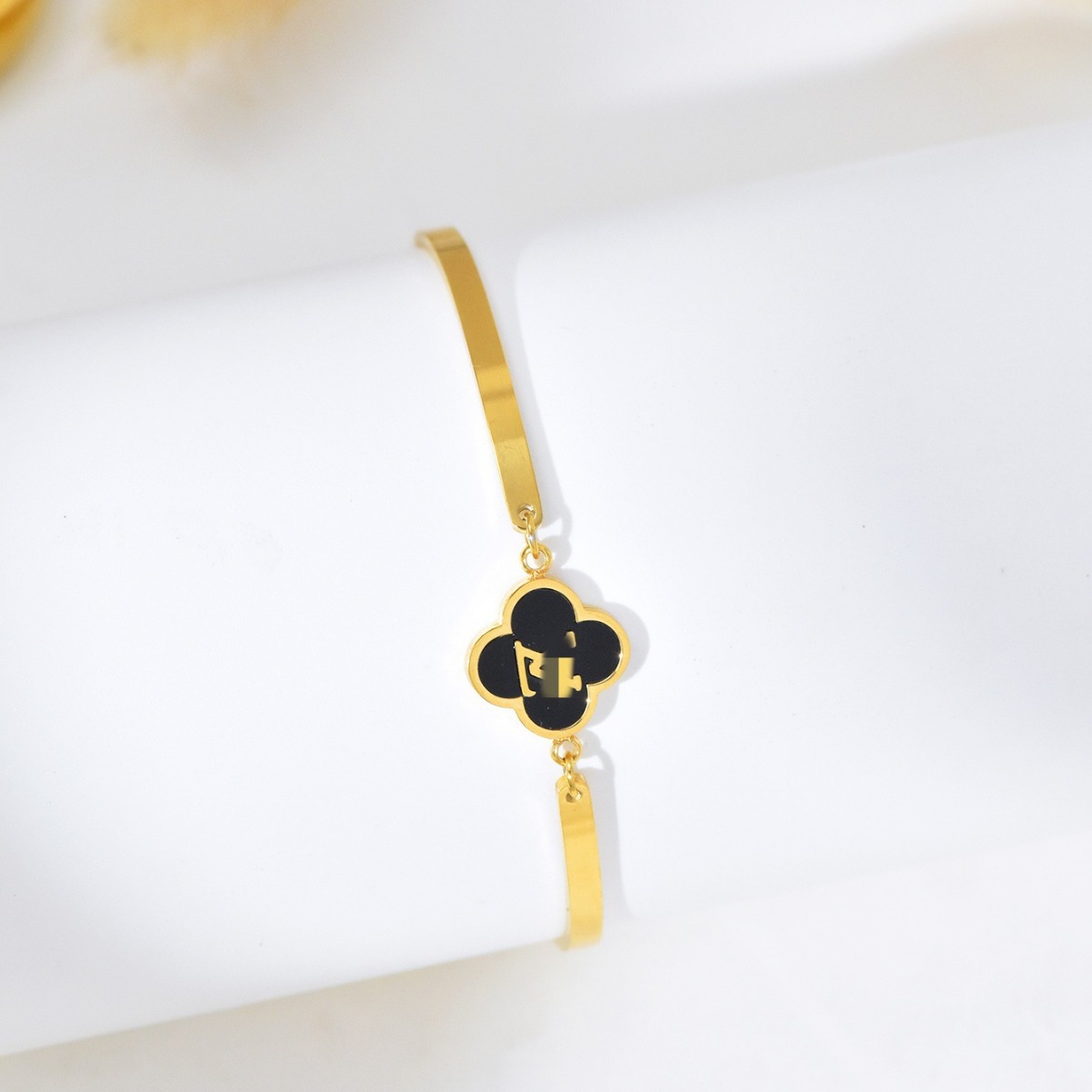 跨境时尚欧美轻奢风黑白贝母四叶草花朵手镯手链女高级感钛钢手饰 English | 投诉