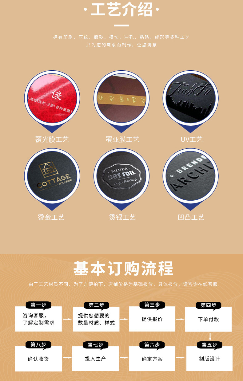 印刷,光泽/哑光层压,植绒,涂漆边缘,彩色箔冲压, 闪闪发光,模切压花/压花,斑点紫外线,油清漆、丝网等。 |