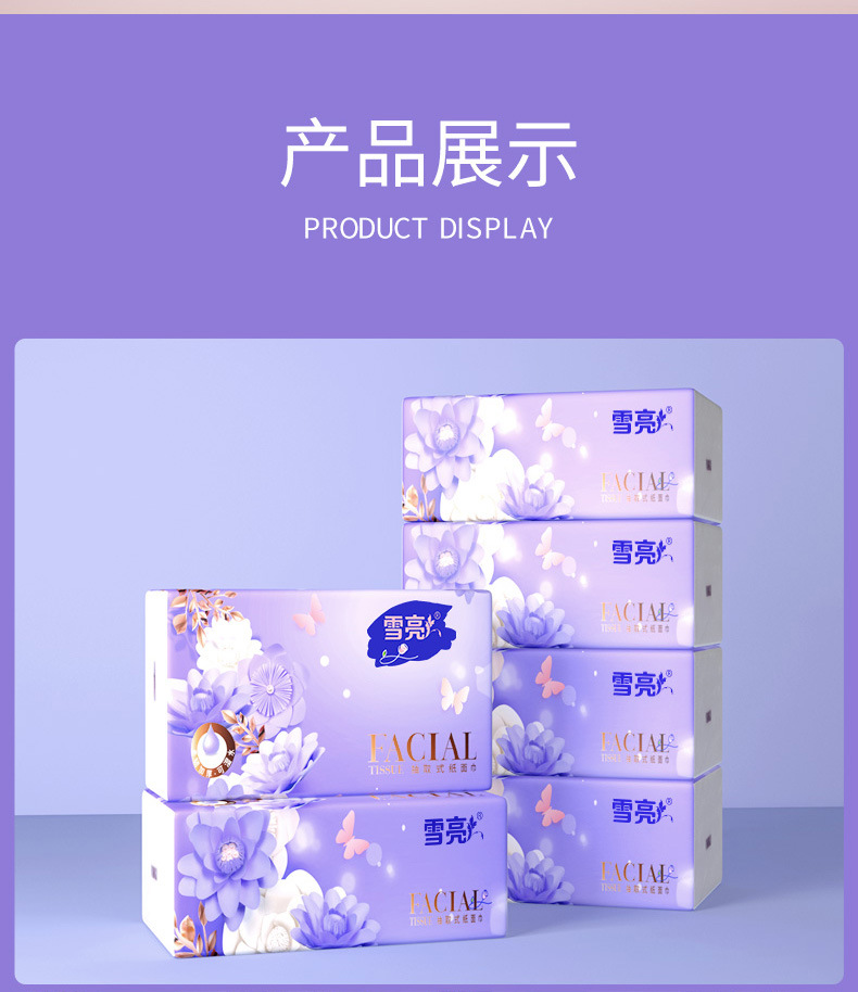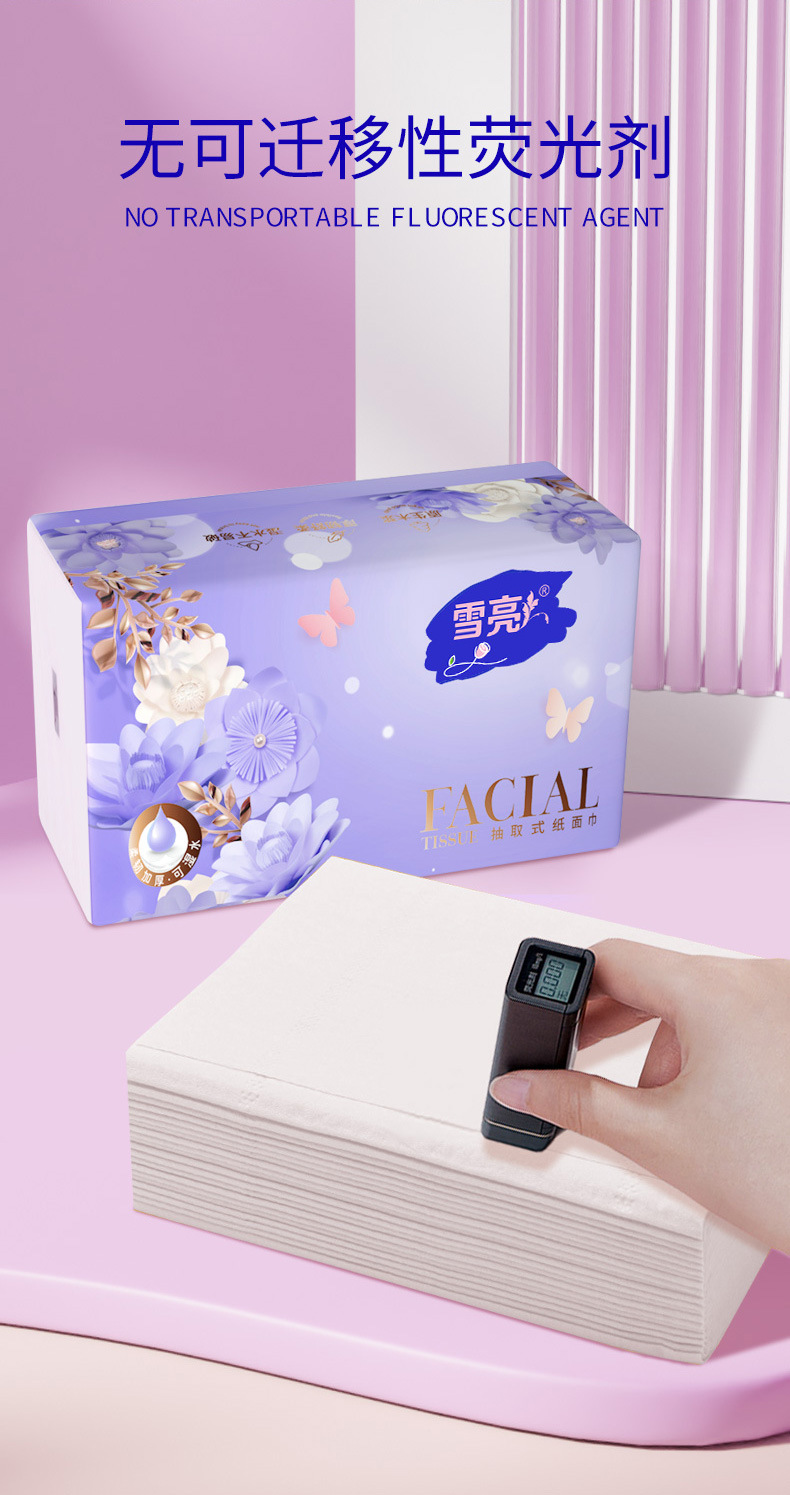 品牌: 雪亮 重量: 65 产品规格: 6包*240张整提装 材质: 原生木浆 纸巾尺寸(cm): 17.5*15.5 型号: XL-3175雪亮压花抽纸 -6包 保质期: 3年 产地: 河北 加印LOGO: 不可以 加工定制: 是 香型: 无香 张数: 240 纸品等级: 合格品 包装规格: 17.5*15.5 层数: 四层 是否跨境出口专供货源: 否 卫生许可证号: 冀卫消证字(2011)第0015号 净含量: 65g 货号: XL-3175雪亮压花抽纸 -6包 是否进口: 否 重量: 0.5 kg/件