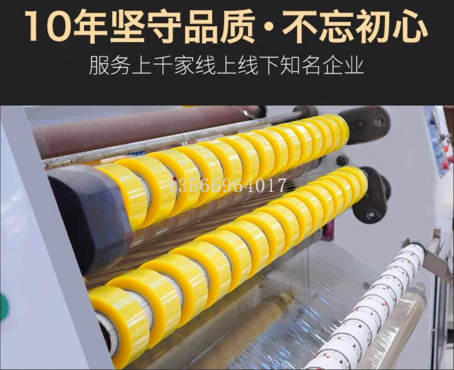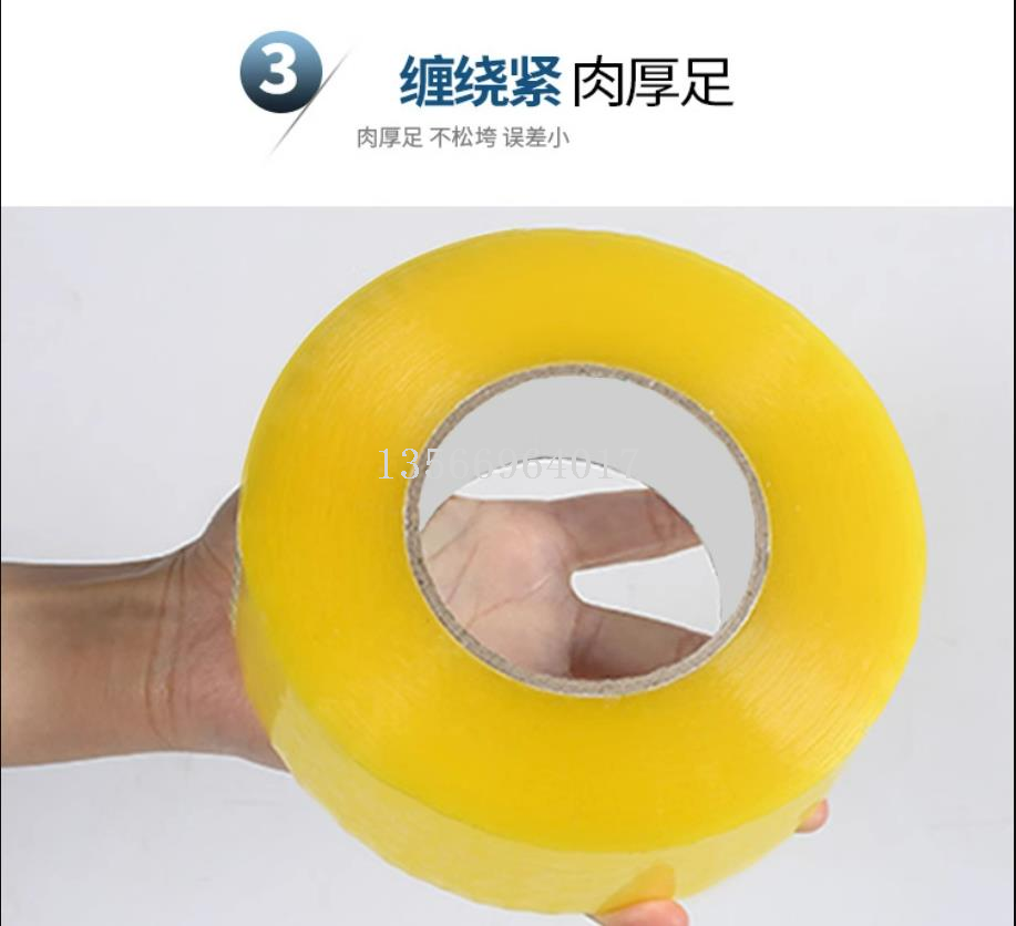 以双向拉伸聚丙烯薄膜(BOPP)为基材,经过加温均匀涂抹压敏胶制造而成。具有高抗拉升力、质轻、环保等优点,适用于各类包装封粘固定,特别是纸箱的封粘。搭配自动包装机封箱,已成为包装材料主流。