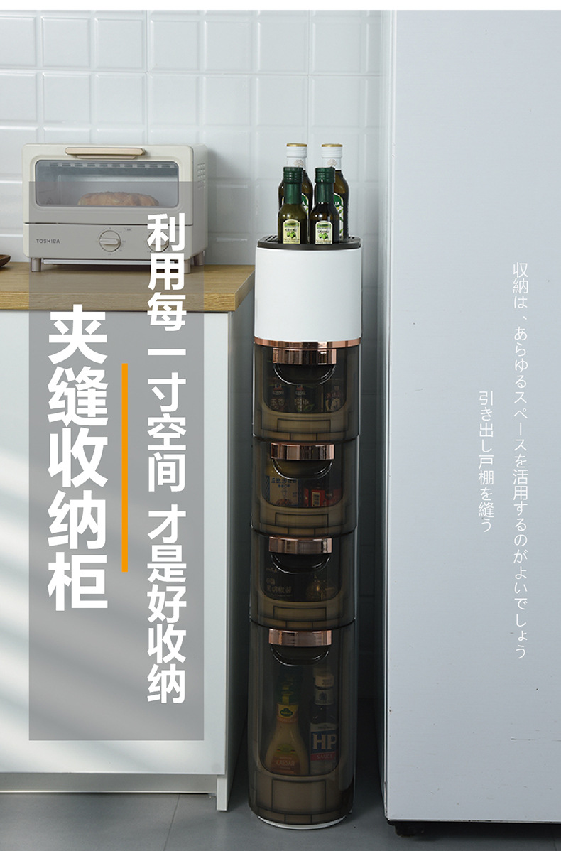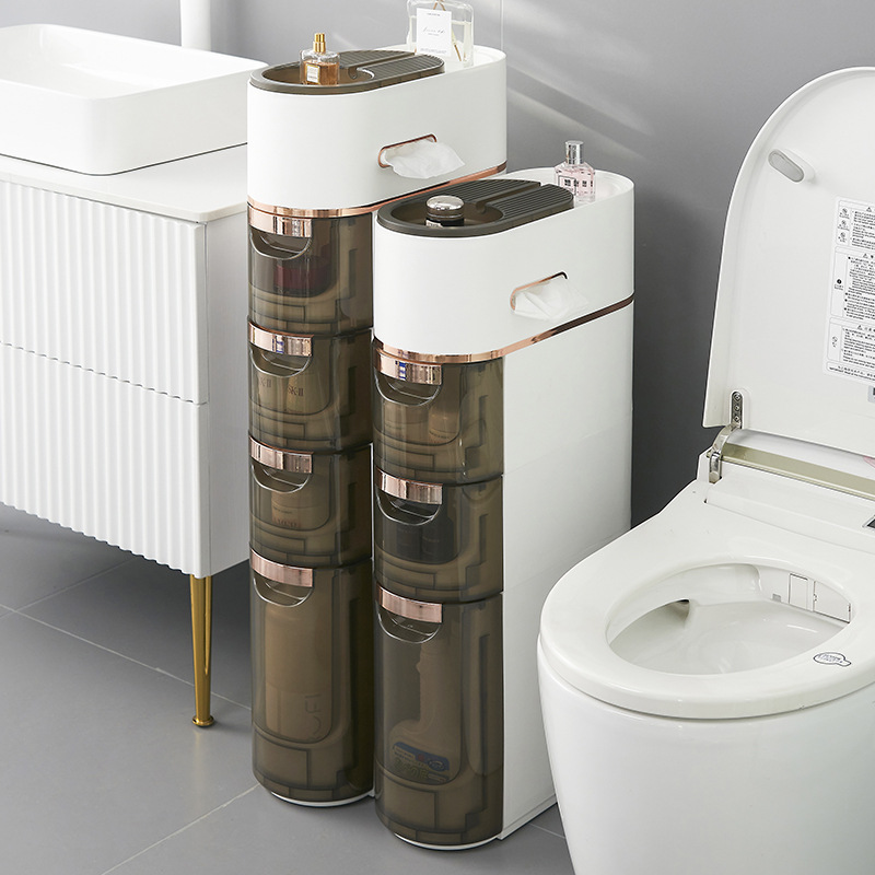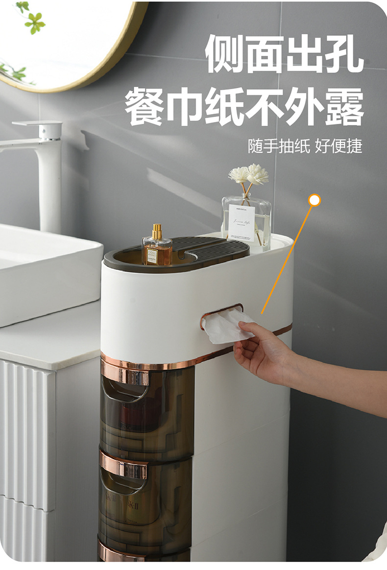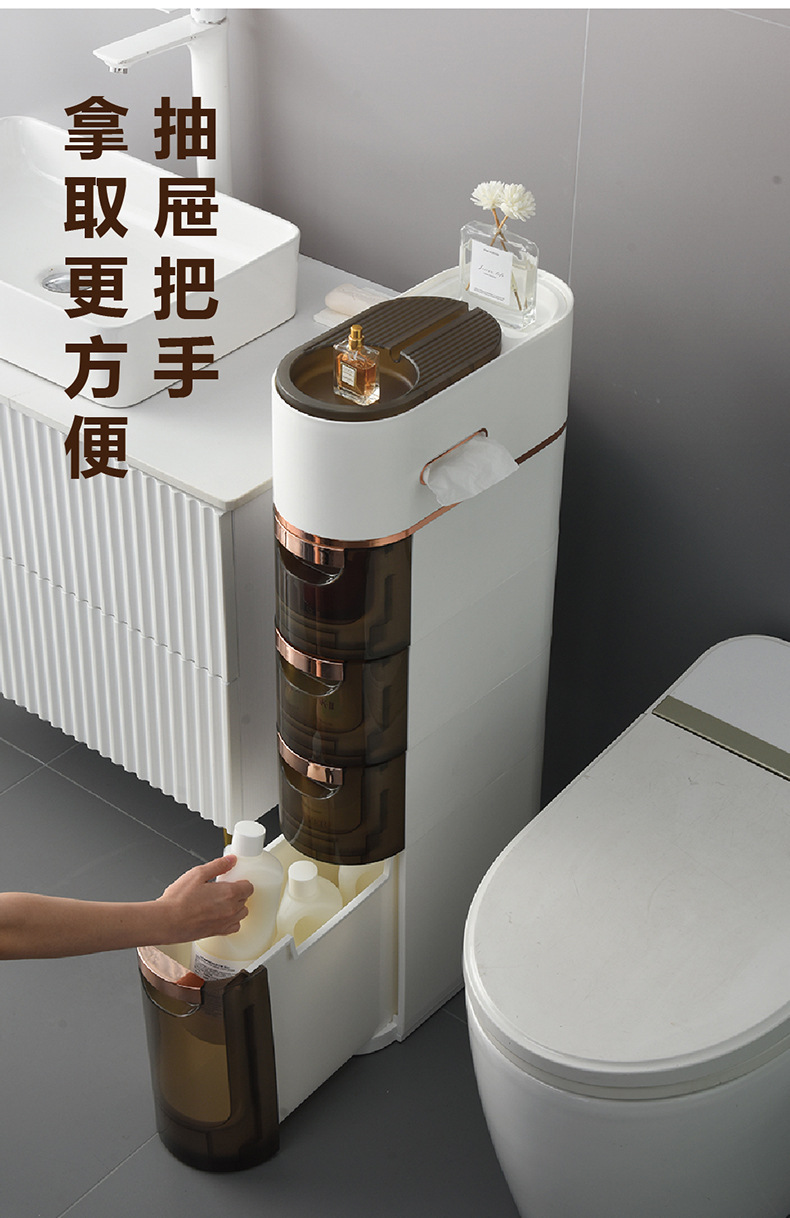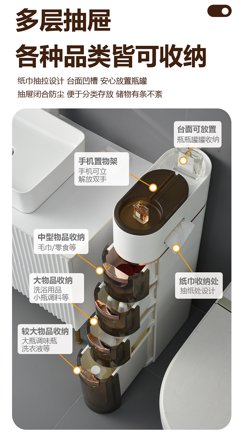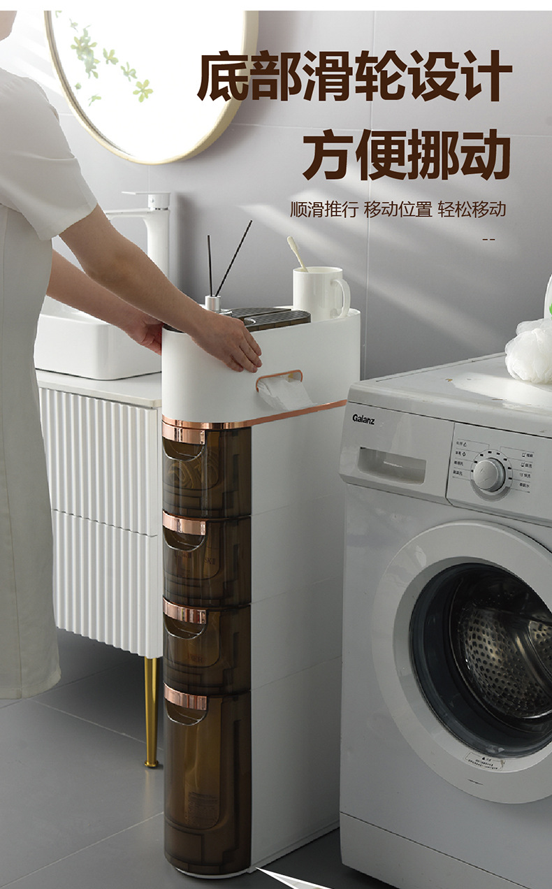 卫生间置物架抽屉式夹缝收纳柜侧边柜滑轮卫生间多层玩具储物柜子