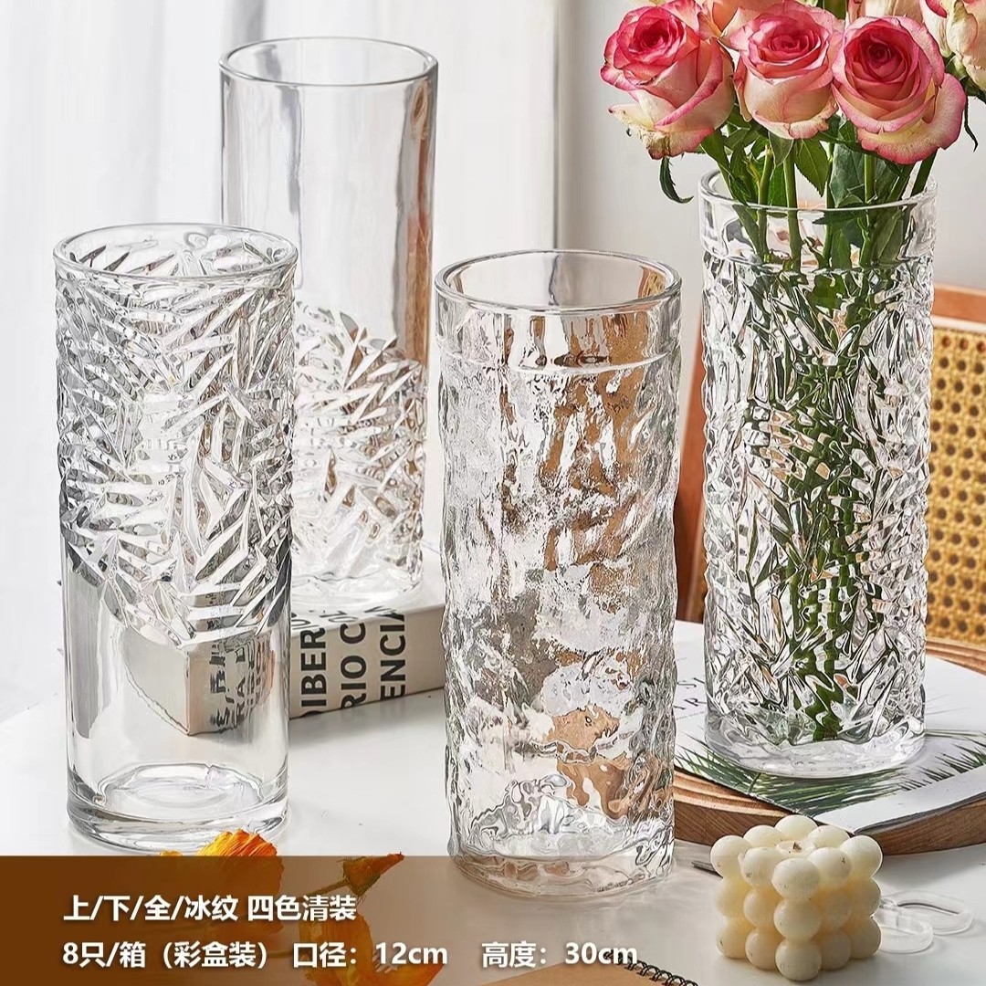 冰纹水晶玻璃花瓶富贵竹水养摆件客厅插花透明简约玻璃花瓶 English | 投诉