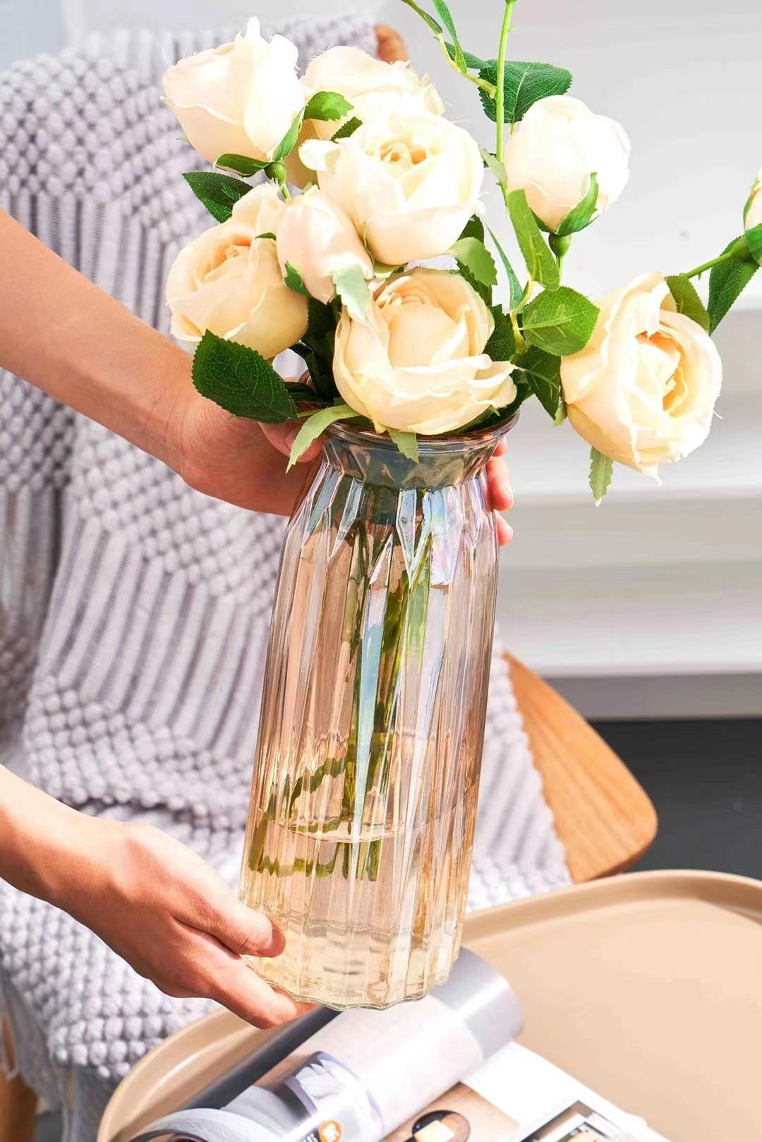 加厚玻璃花瓶七夕园艺情人节离子镀冰蓝琥珀五彩烟灰色折纸花瓶