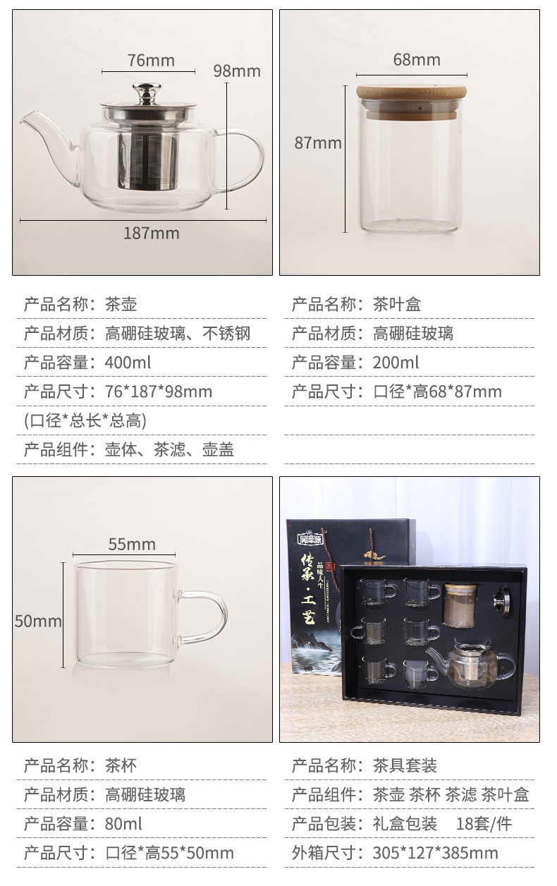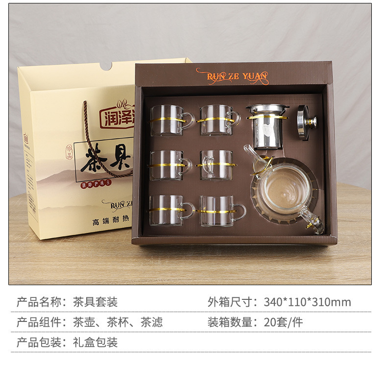 礼盒包装茶具套装 商务送礼礼品透明耐热玻璃杯 带把茶杯可送礼 English | 投诉