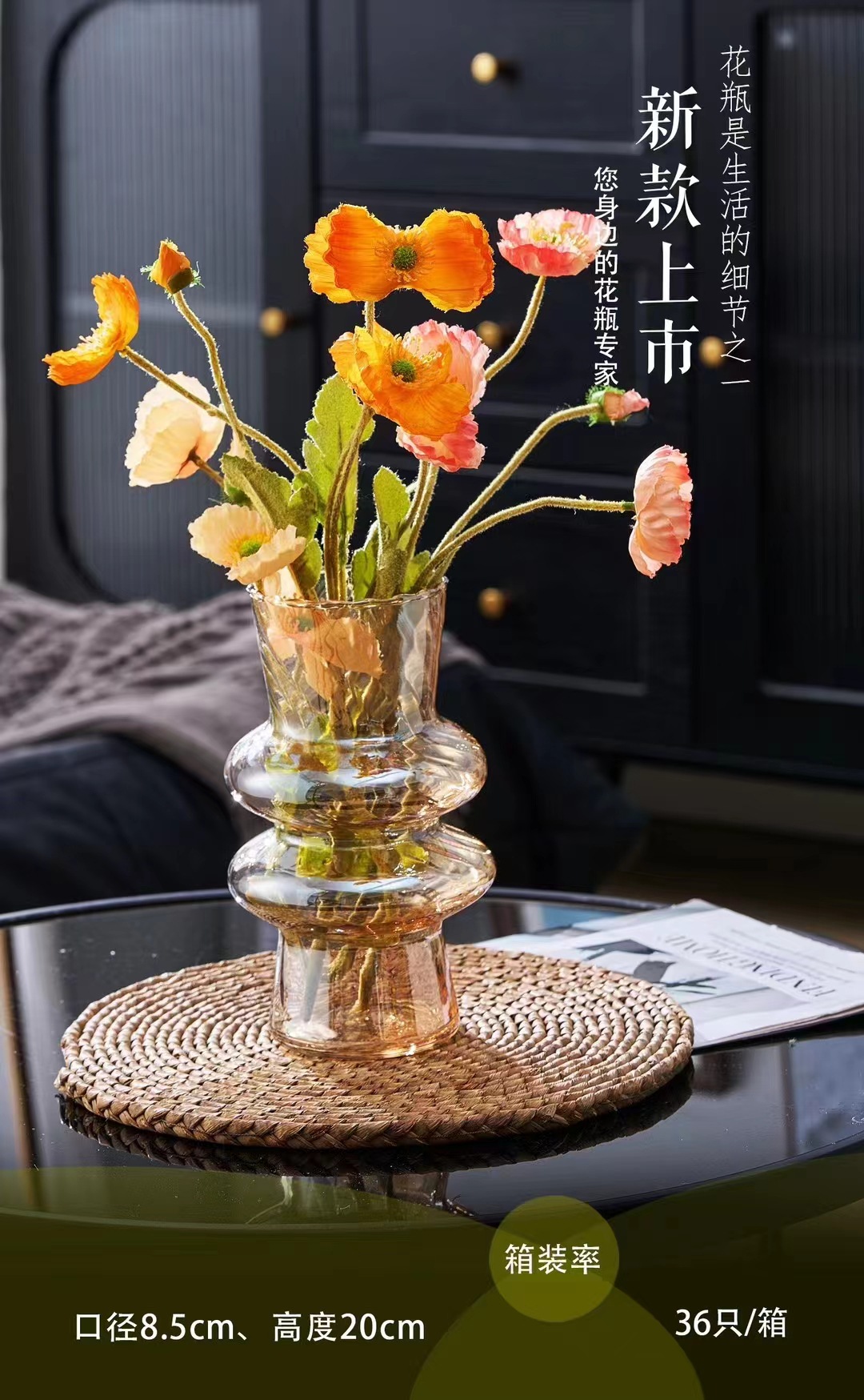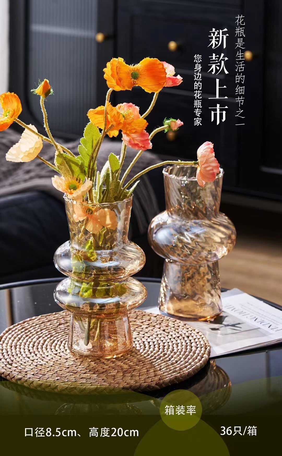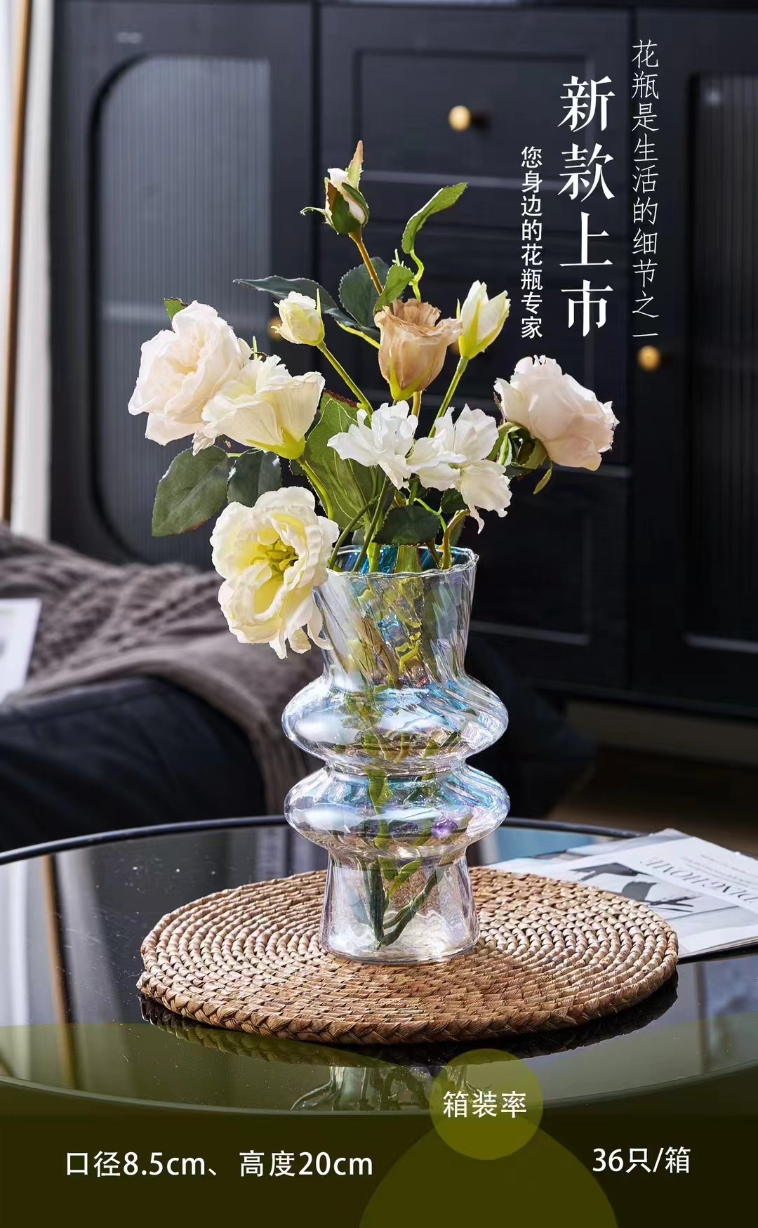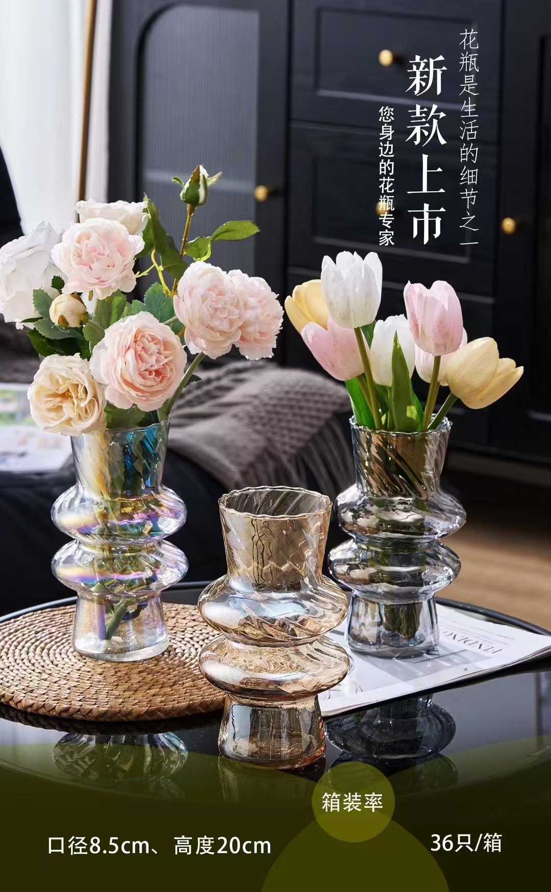 厂家直销新款玻璃扭纹花瓶书桌客堂办公室插花桌面装饰现代简约彩 English | 投诉