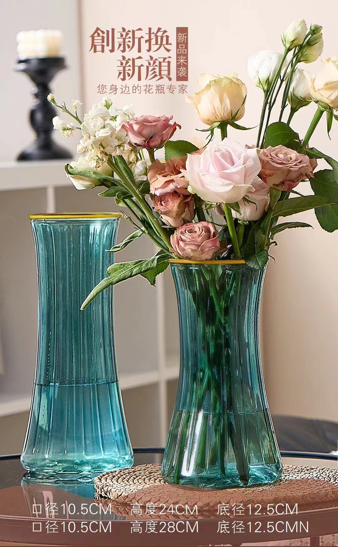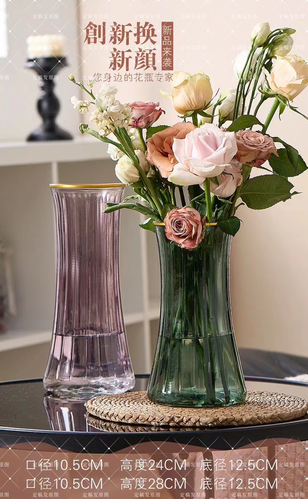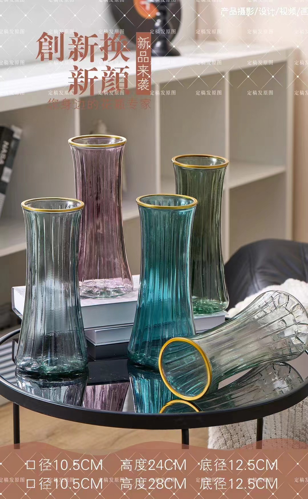 蔷薇苗北欧创意轻奢网红描金透明客厅水养鲜花插花干花花瓶摆件 English | 投诉