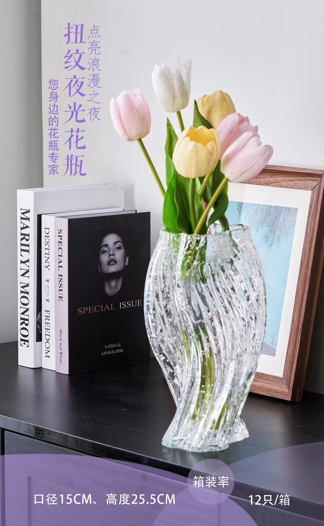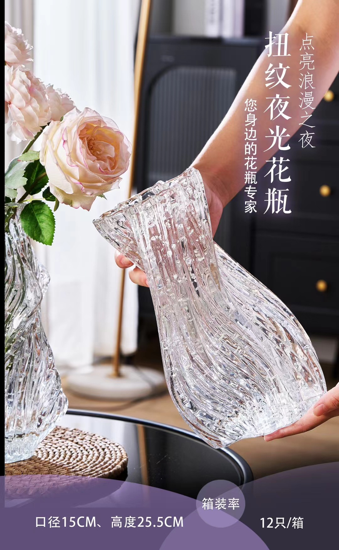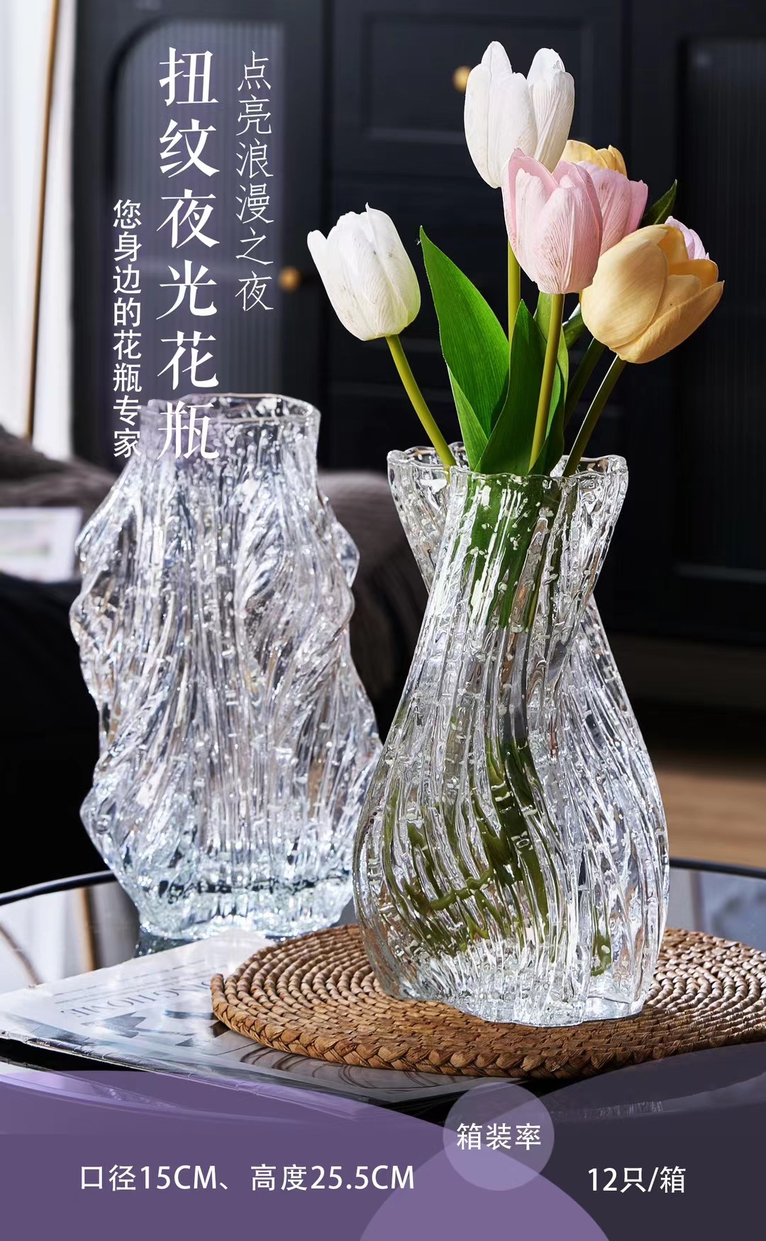 吕林霞不规则创意灰玻璃花瓶清透简约插花设计新品软装摆件加厚 English | 投诉