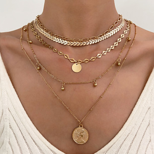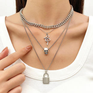 欧美跨境气质小众异形珍珠多层套装项链嘻哈ins金属蛇骨链条项饰