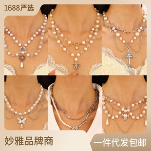 欧美跨境气质小众异形珍珠多层套装项链嘻哈ins金属蛇骨链条项饰 投诉