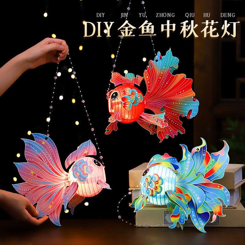 新款中秋灯笼儿童节日diy国风发光花灯材料包手提蜂窝球金鱼花灯