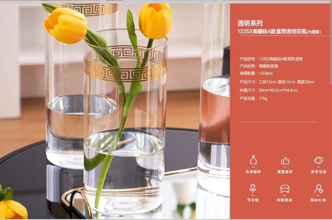 12353高硼硅A款直筒透明花瓶(内盒装) ¥1400 9999个可售