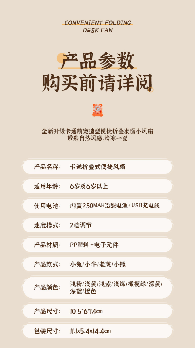 【产品名称】卡通折叠小风扇