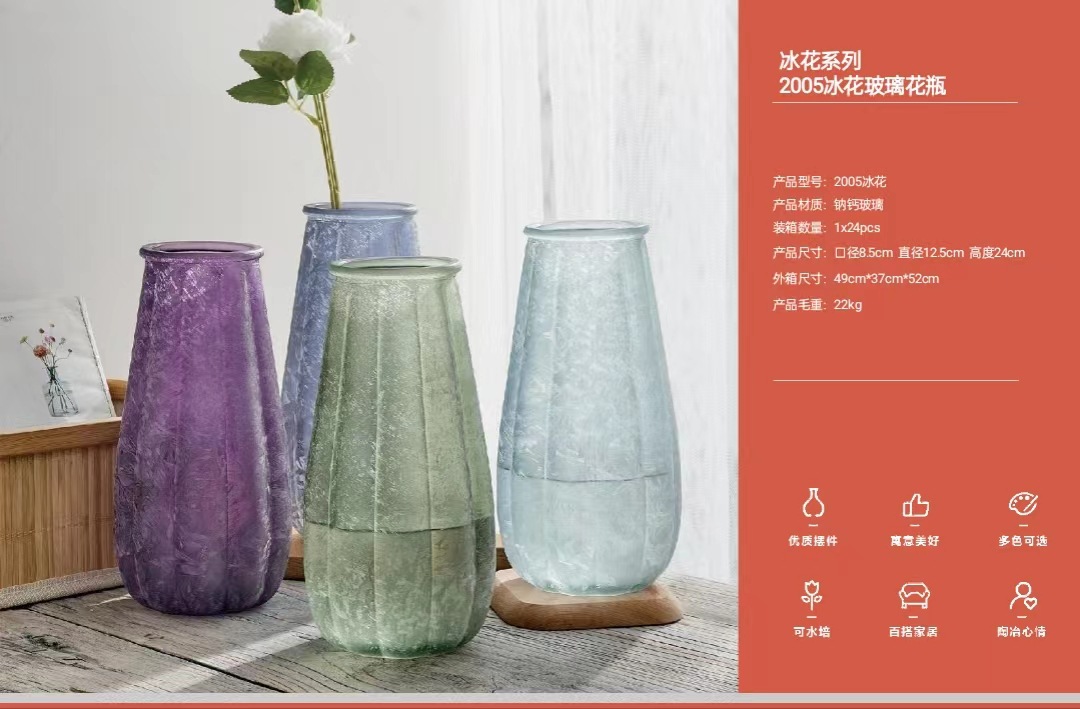 工厂批发彩色玻璃花瓶插画透明现代冰花系列创丰玻璃花瓶批发 English | 投诉