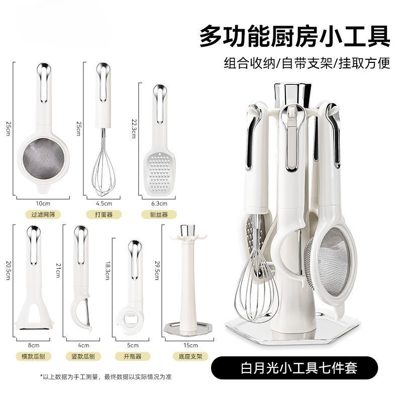 跨境新款厨房小工具7件套打蛋器过滤器萝卜刨开瓶器阳江工厂现货