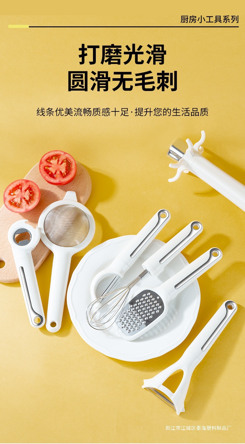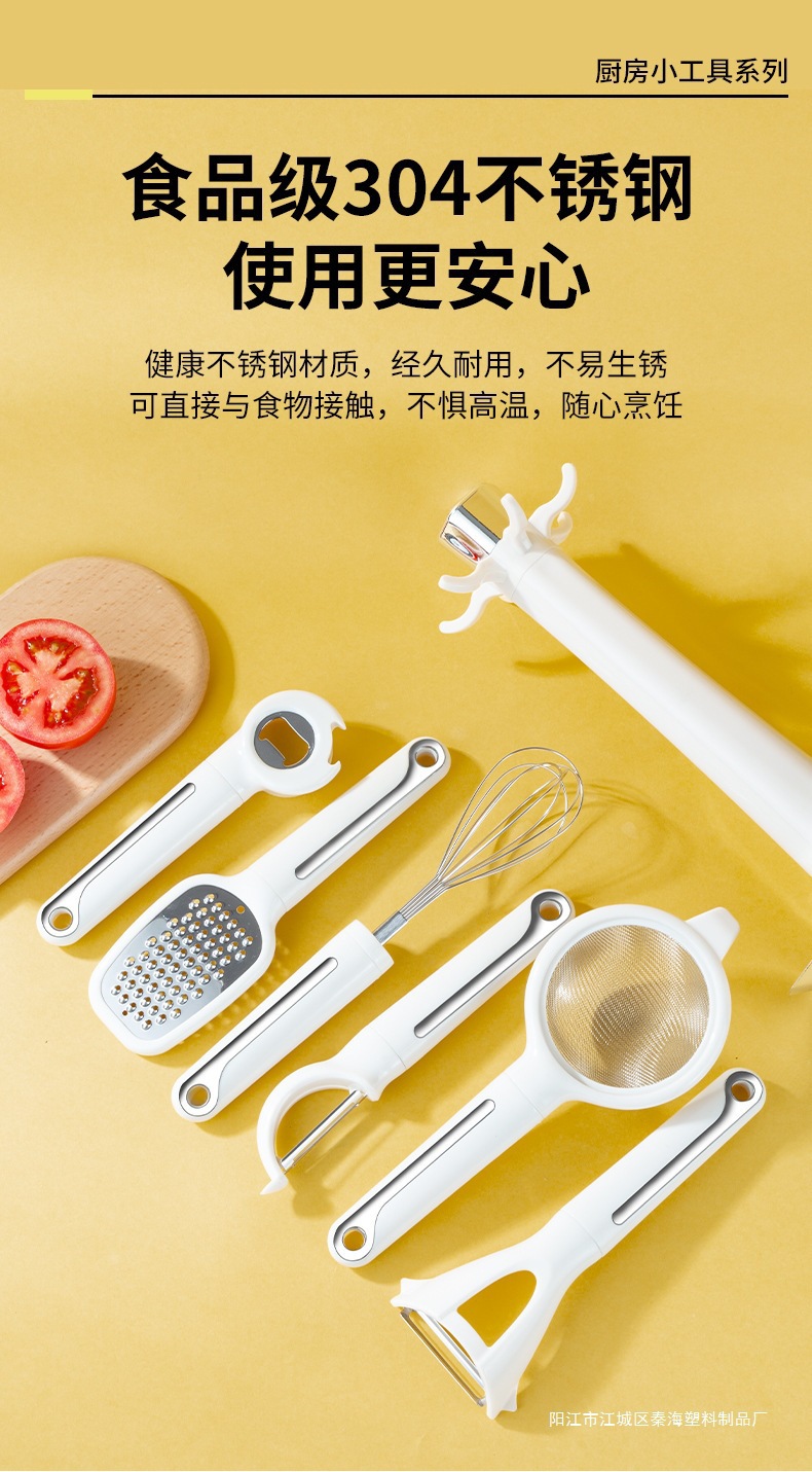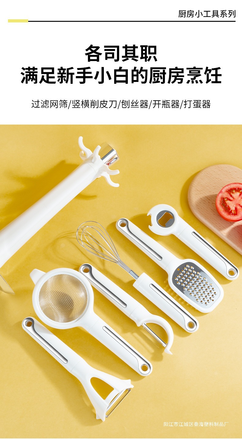 跨境新款厨房小工具7件套打蛋器过滤器萝卜刨开瓶器阳江工厂现货 English | 投诉