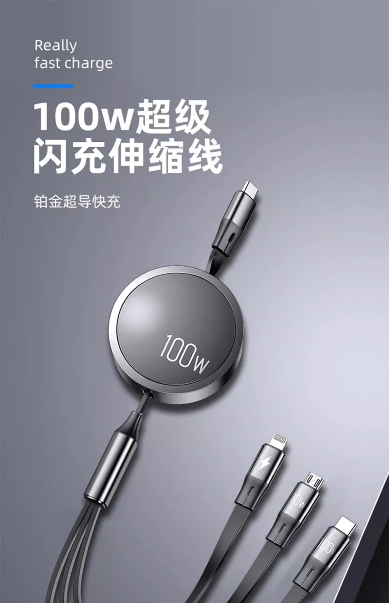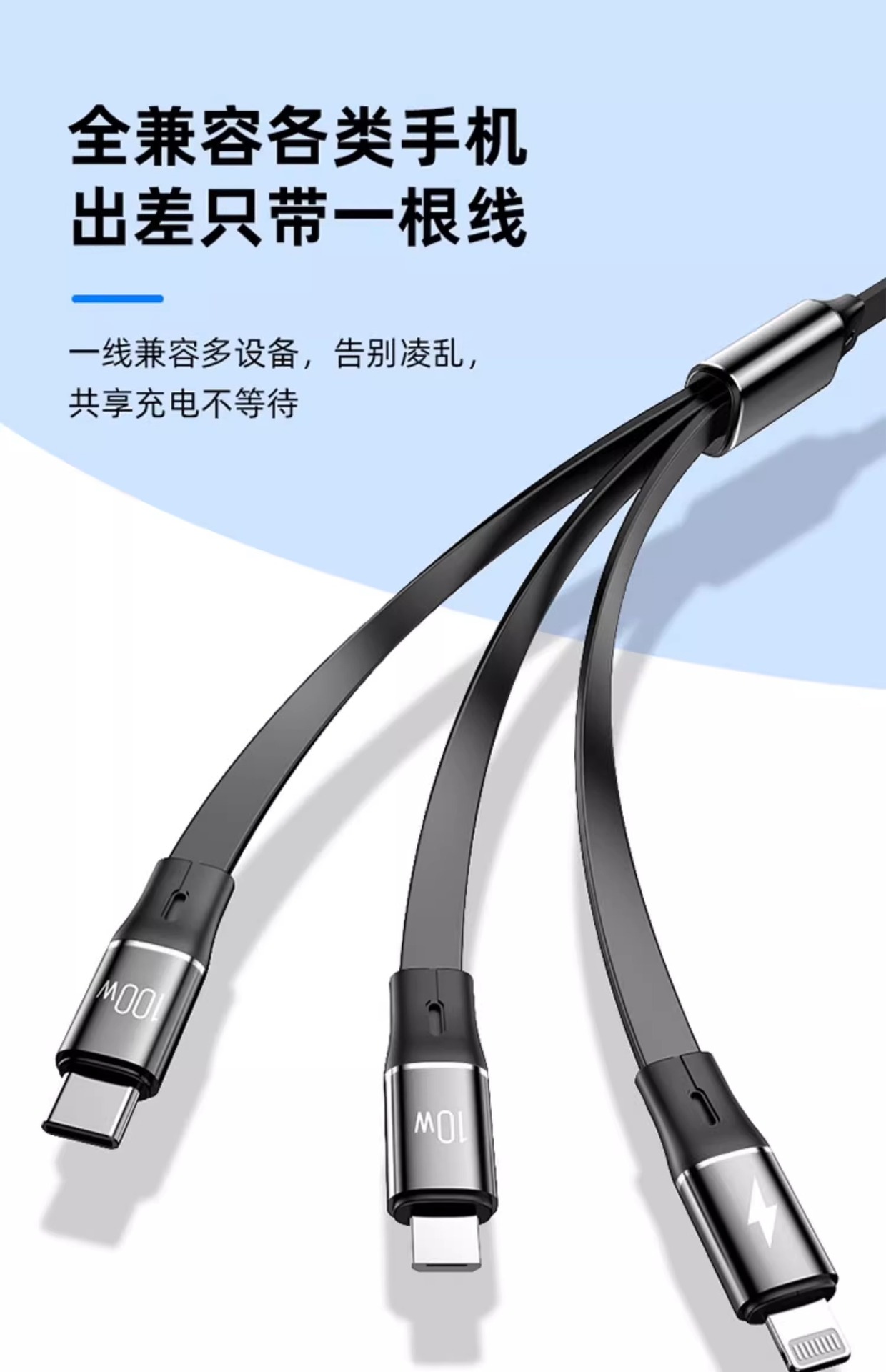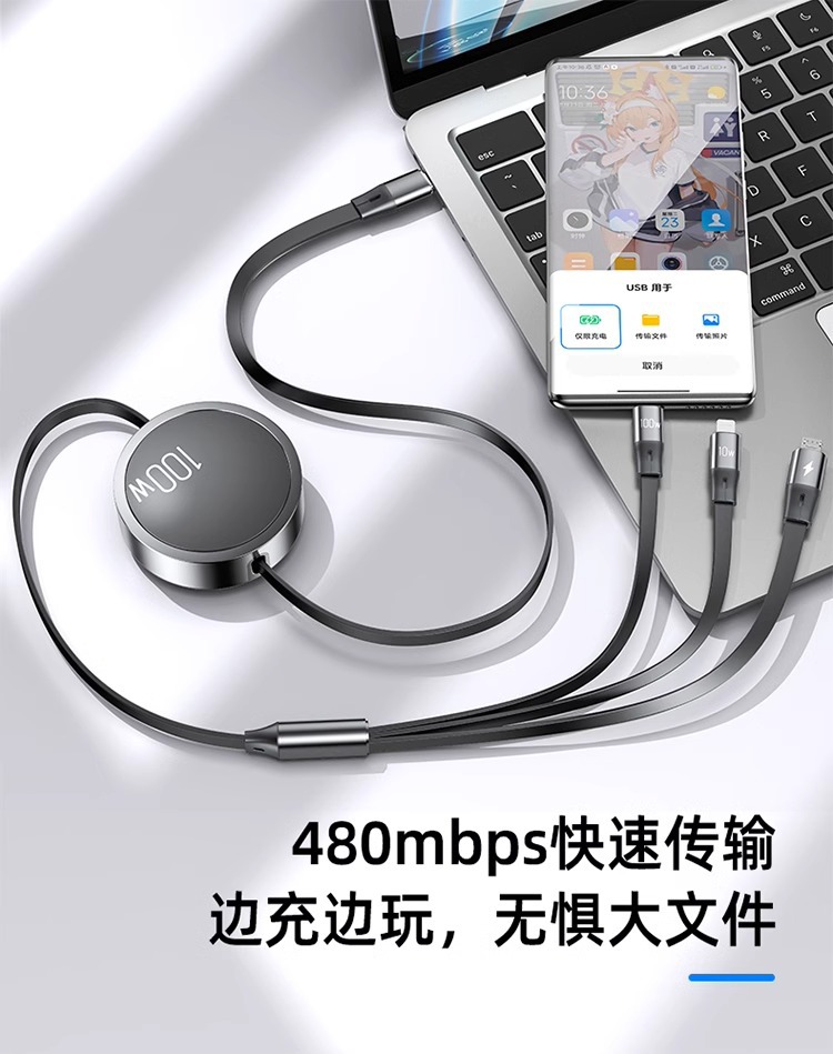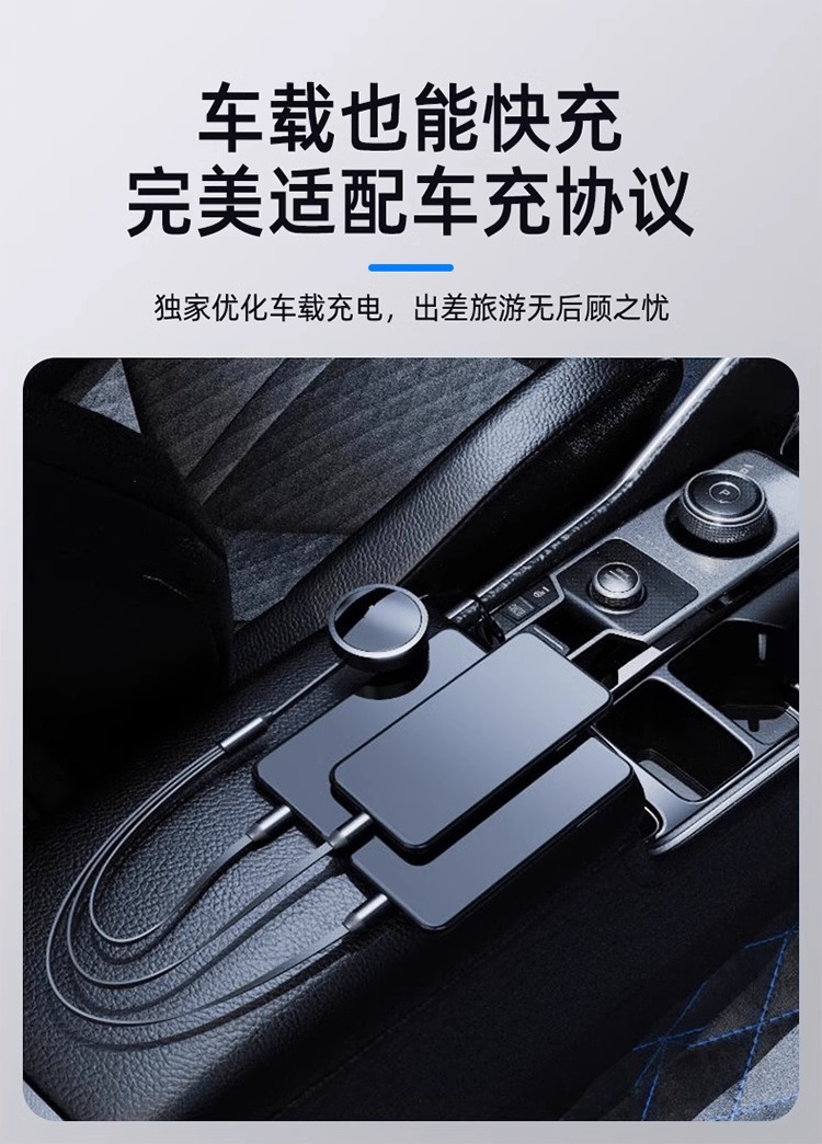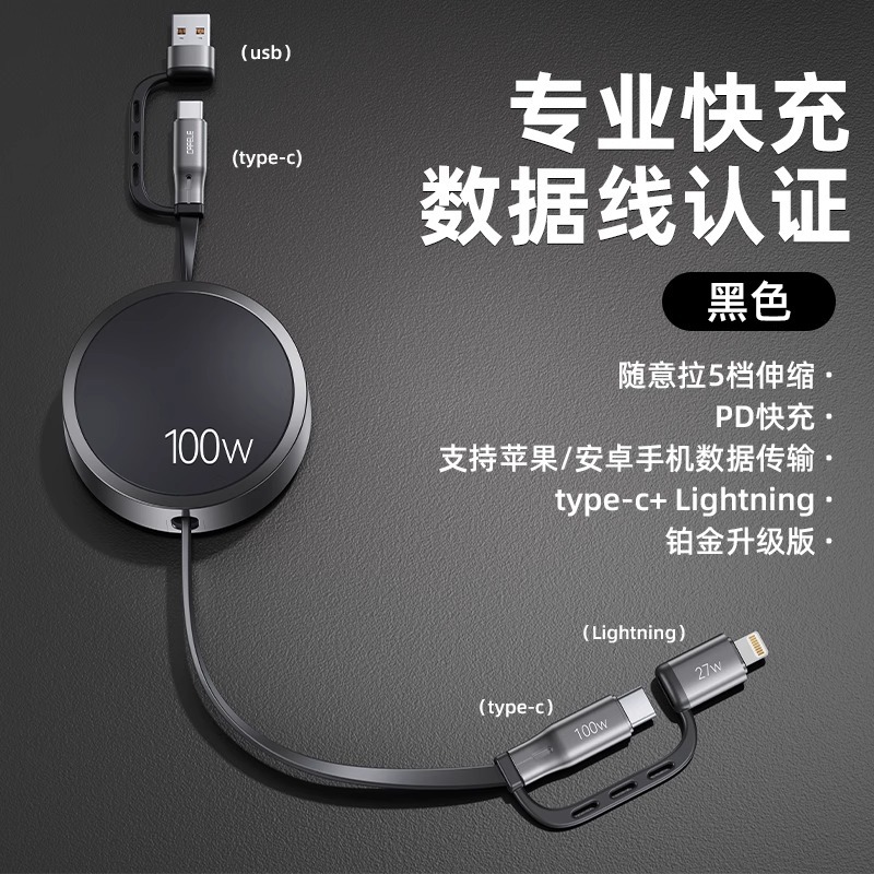 三合一数据线100W快充一拖三Typec手机车载充电线头宝伸缩多功能 投诉