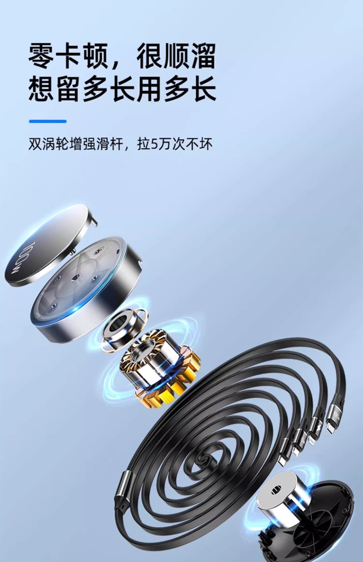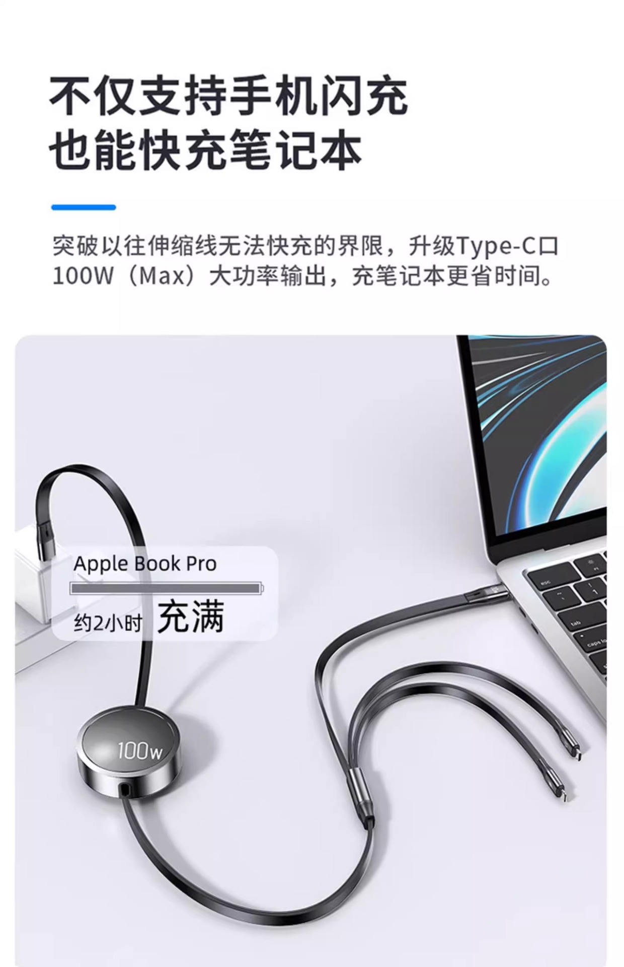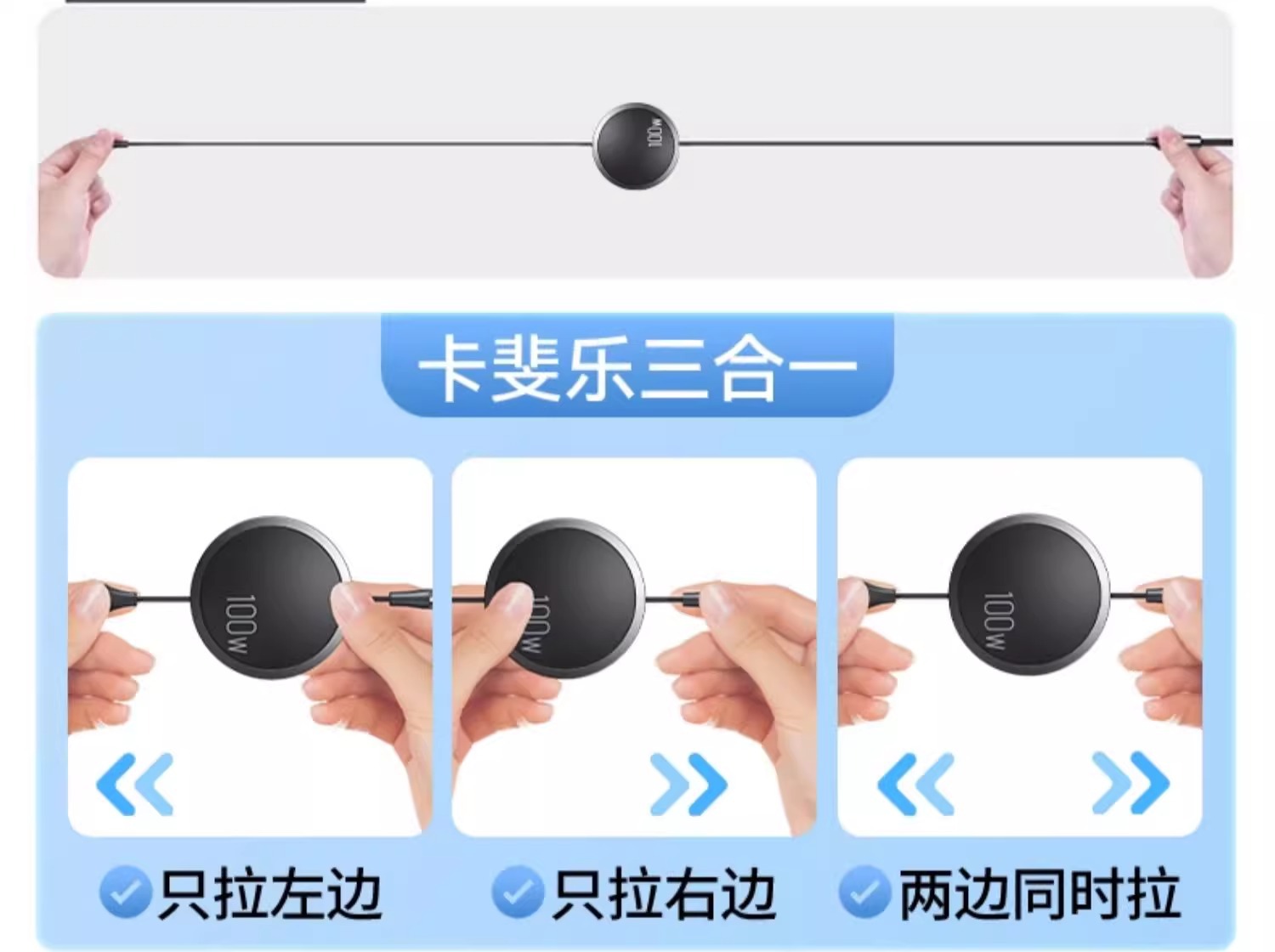 三合一数据线100W快充一拖三Typec手机车载充电线头宝伸缩多功能 投诉