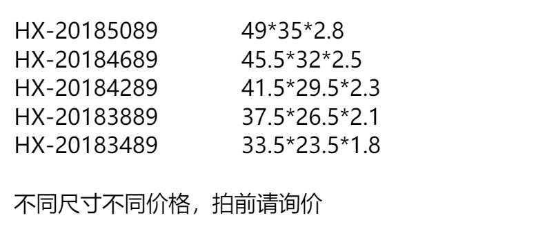 | 49*35*2.8 | ¥610 | 10000个可售 |