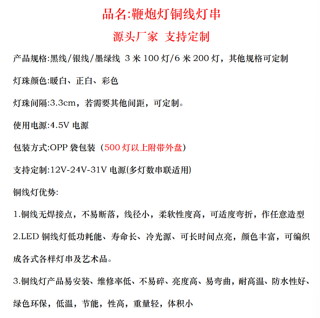 | 3米100灯—4.5V公母接(不含电源) | ¥1163 | 5988只可售 |