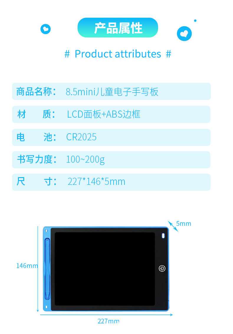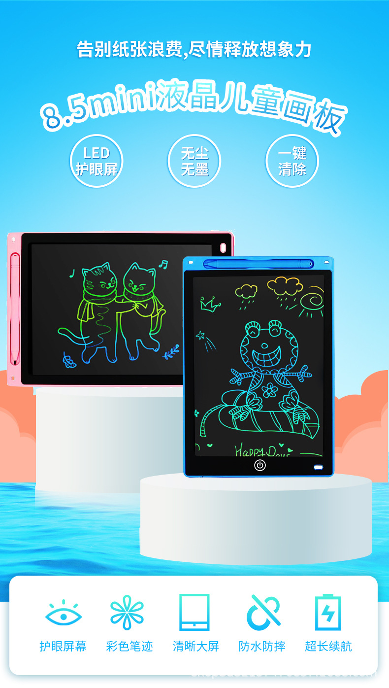 8.5miniLCD液晶画板儿童涂鸦彩色绘画板电子手写板无尘液晶写字板 English | 投诉