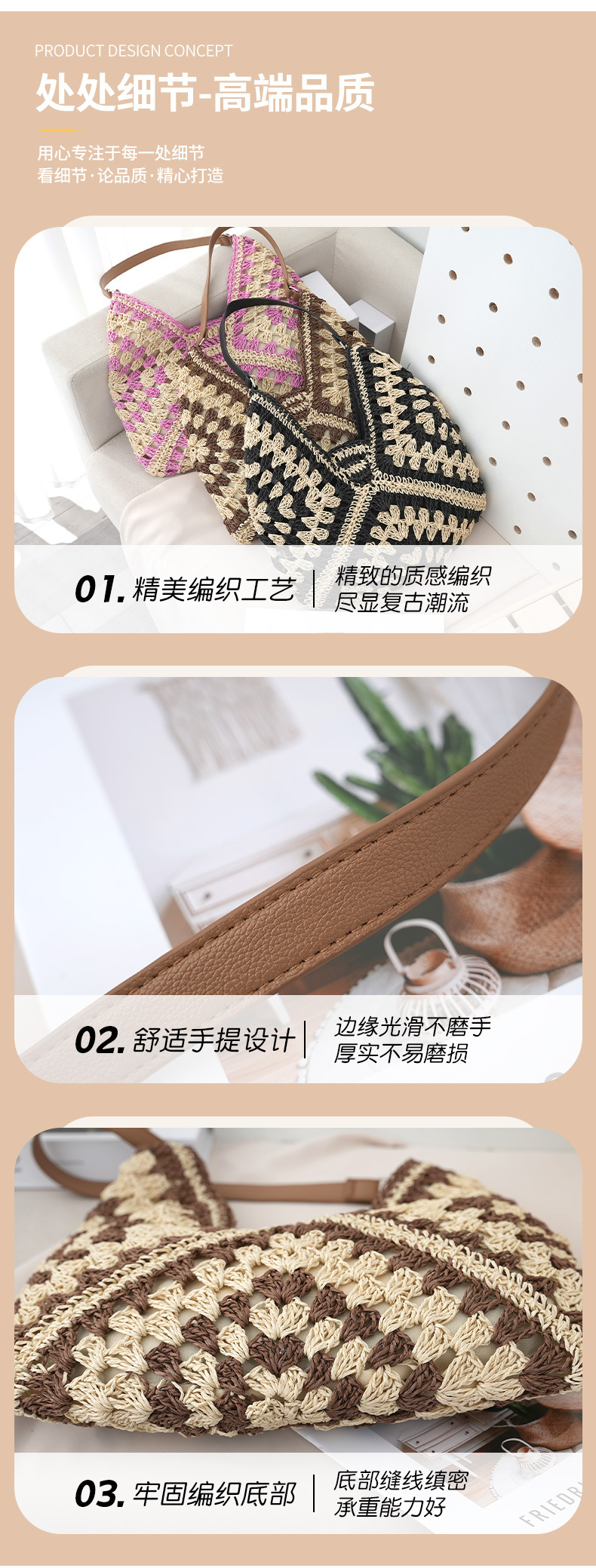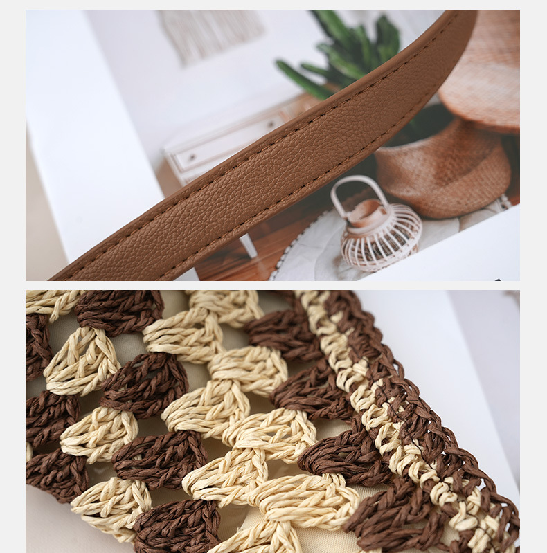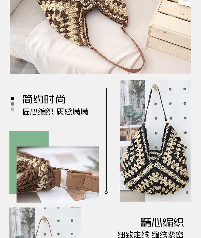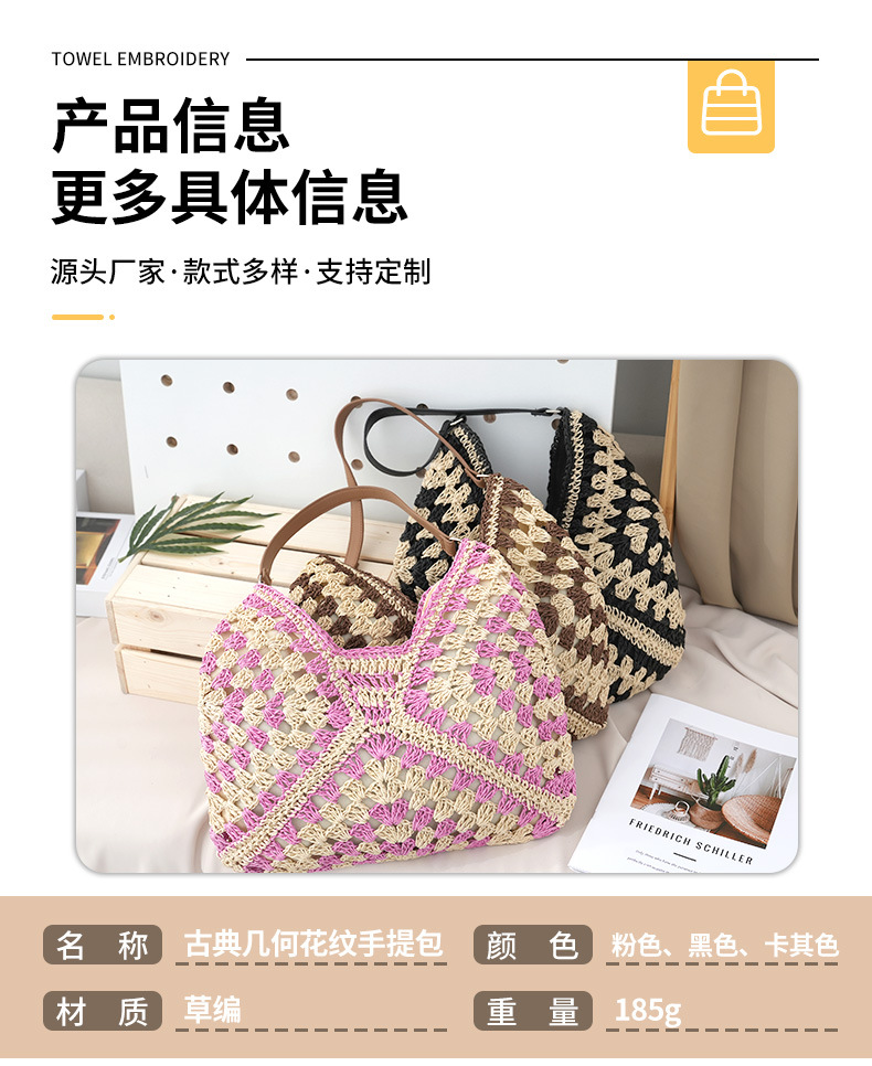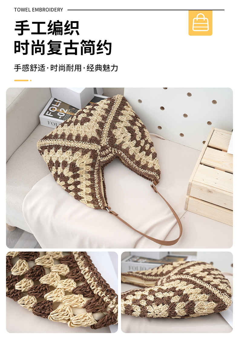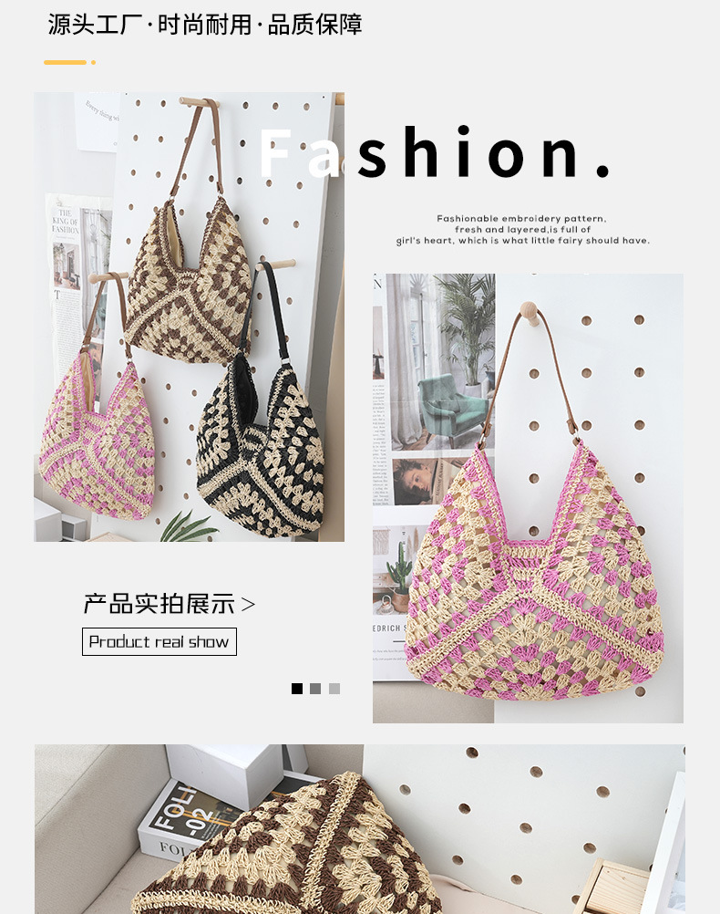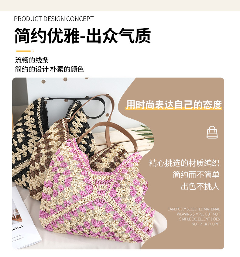 定制厂家新款时尚草编包镂空方花大三角撞色编织包单肩度假沙滩包 English | 投诉