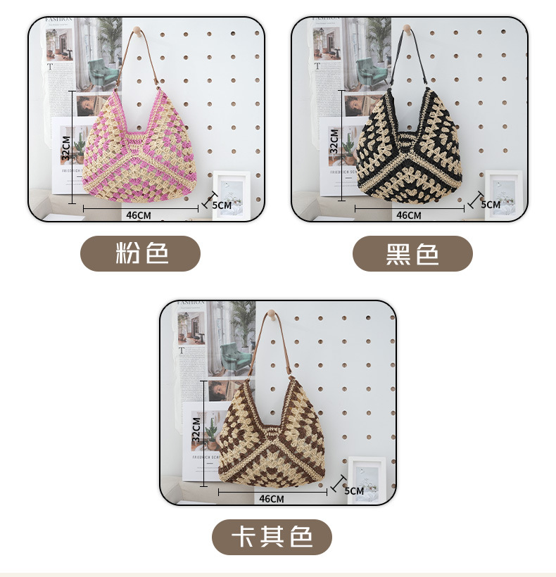 颜色: 黑色,粉色,卡其色 尺寸: 46*5*32cm 风格: 都市简约 材质: 草编 箱包大小: 大 上市年份季节: 2023年春季 适用场景: 日常搭配 品牌: 无 流行元素: 编织 货号: 单肩包