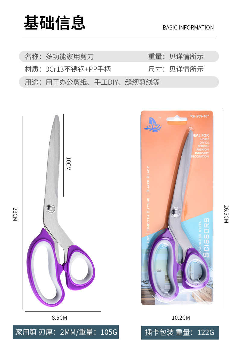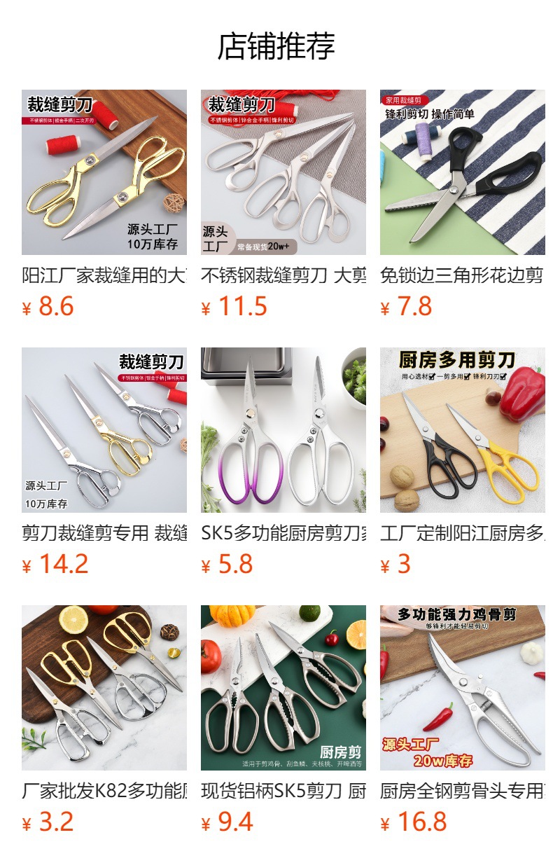 阳江带包装专业裁剪用的剪刀 不锈钢家用办公剪纸裁布用裁缝剪刀