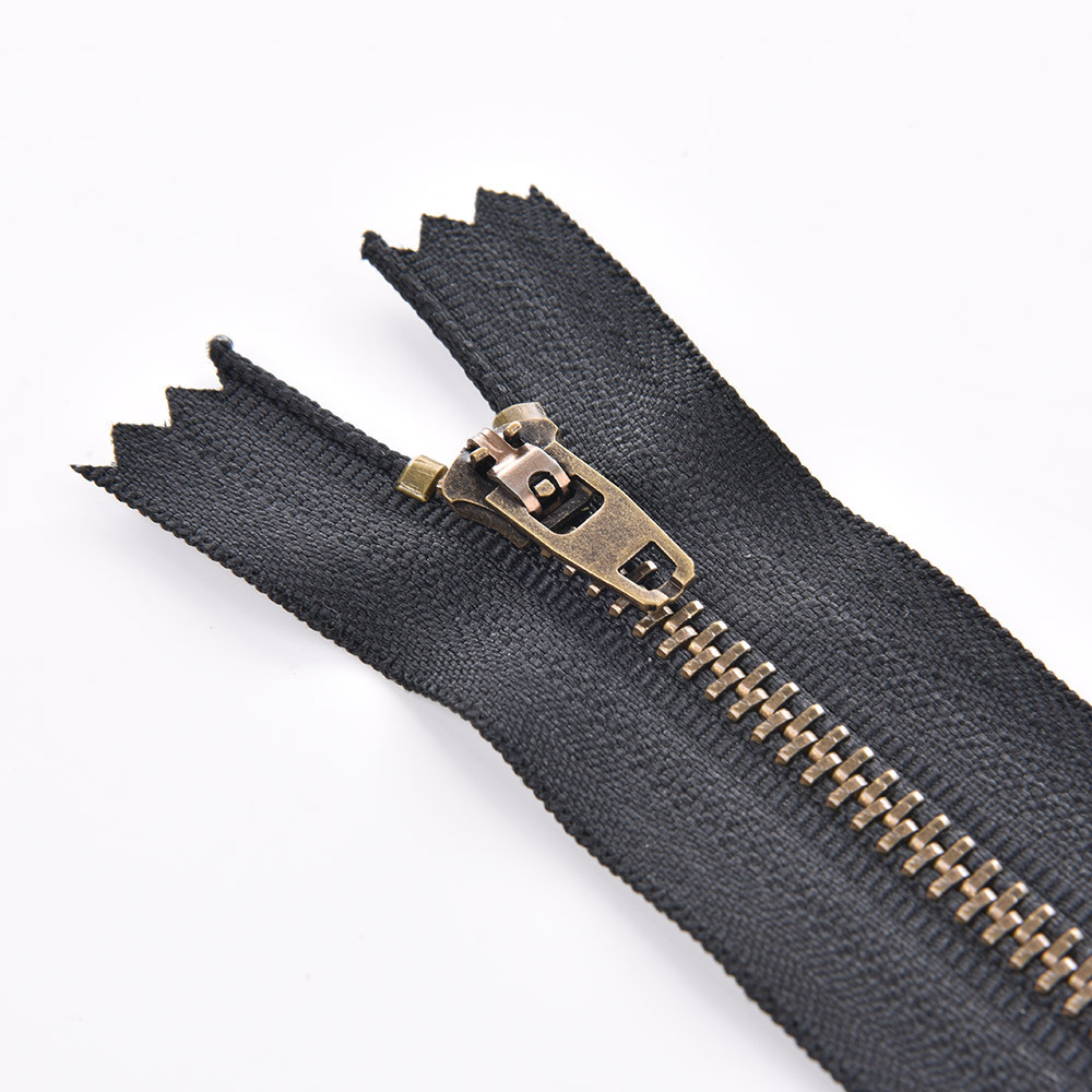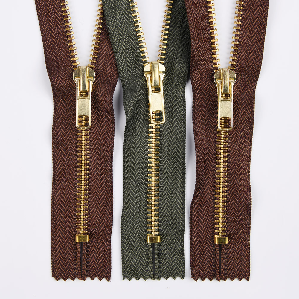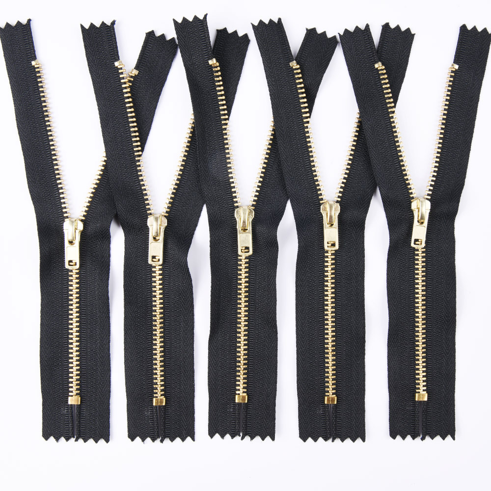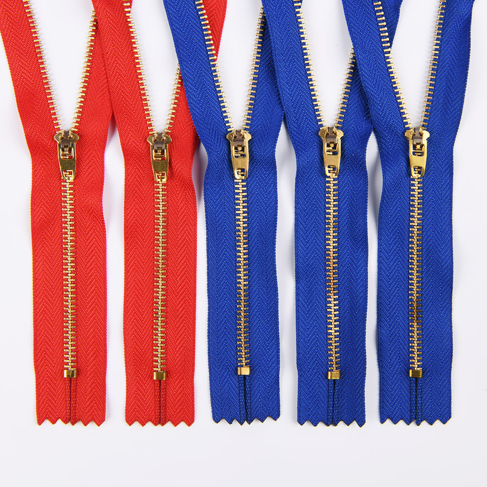 金属拉链牙齿有普通牙,和Y牙,颜色有黄铜,青铜,黑镍,镀白铜,古银,白金,黄金,浅金,玫瑰金。