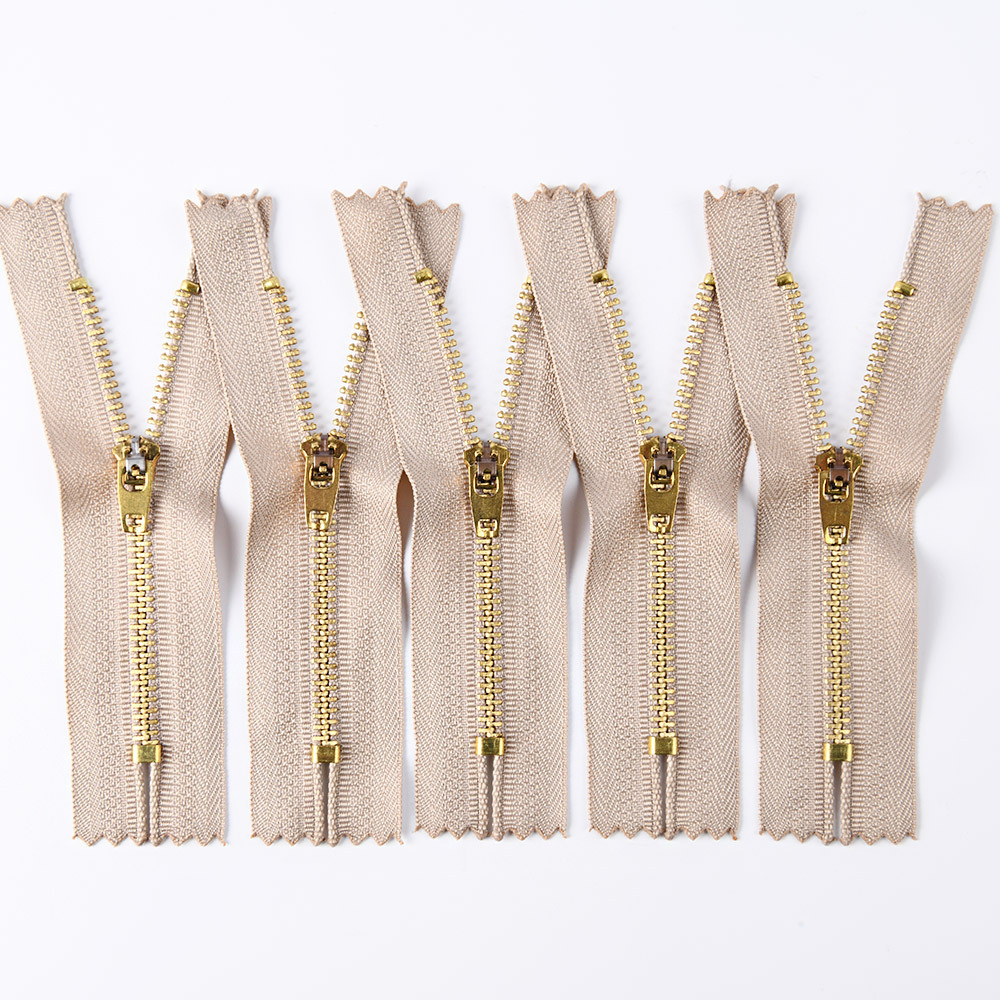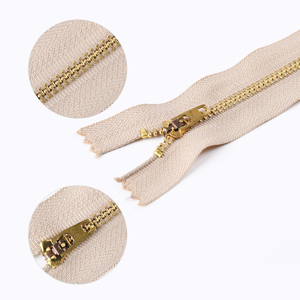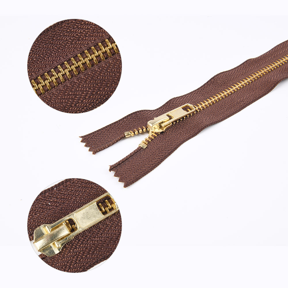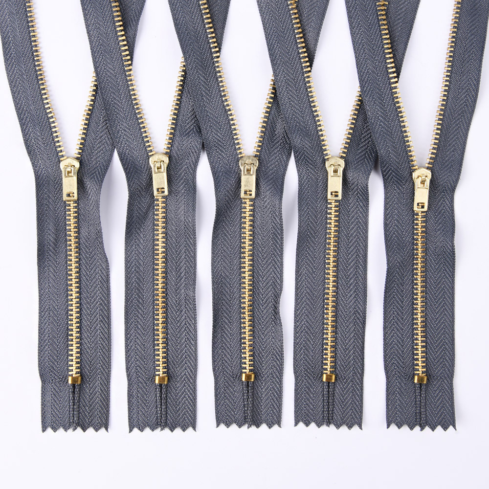 金属拉链牙齿有普通牙,和Y牙,颜色有黄铜,青铜,黑镍,镀白铜,古银,白金,黄金,浅金,玫瑰金。