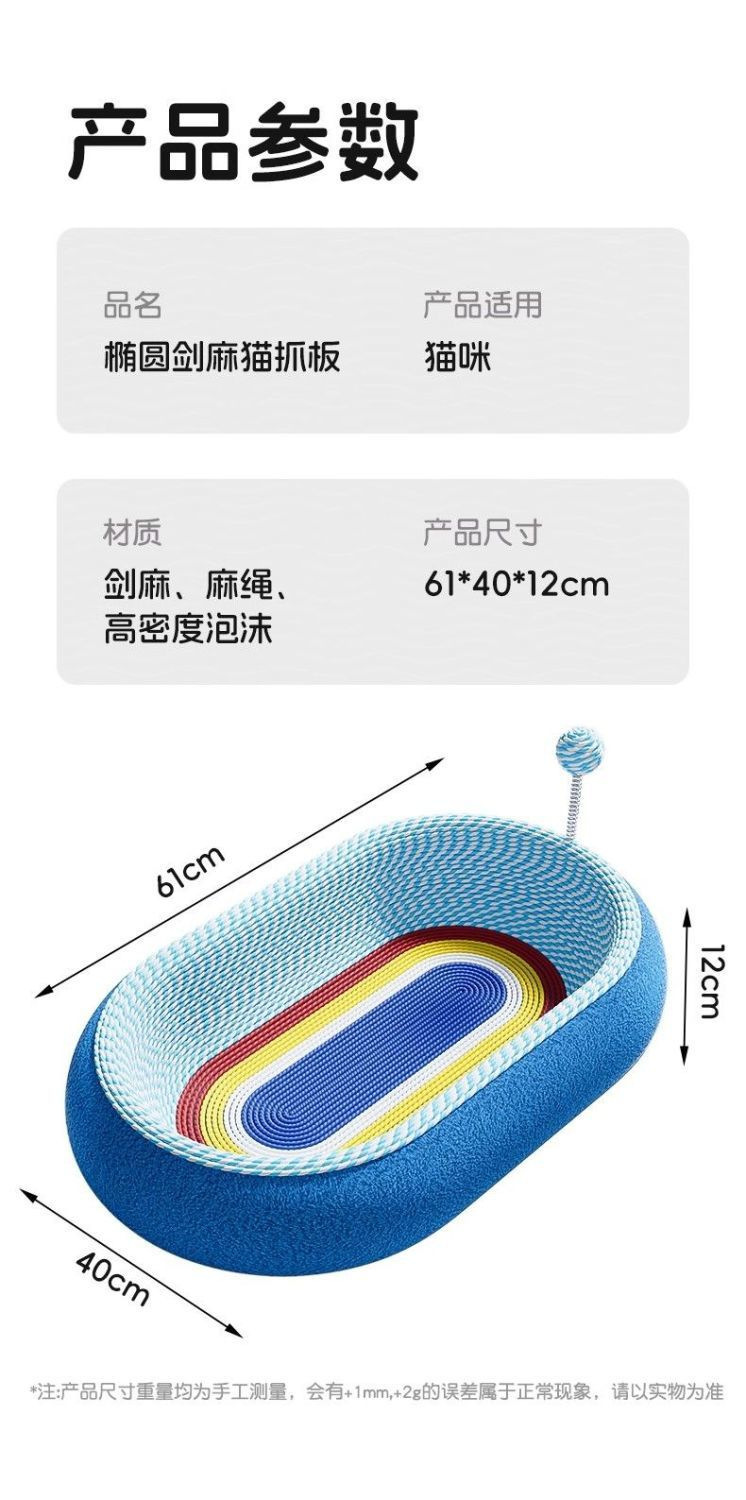 是否专利货源: 否 是否跨境出口专供货源: 否 货号: YYX001-X 颜色: 彩色圆形剑麻猫抓板,彩色椭圆剑麻猫抓 品牌: 其他 材质: 其他 箱装数量: 其他 风格: 简约 规格: 常规